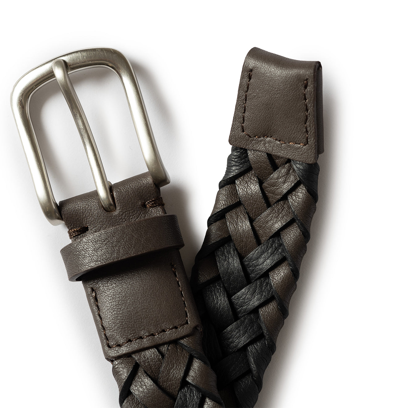 - Ineinandergreifende braune und schwarze Lederstränge.