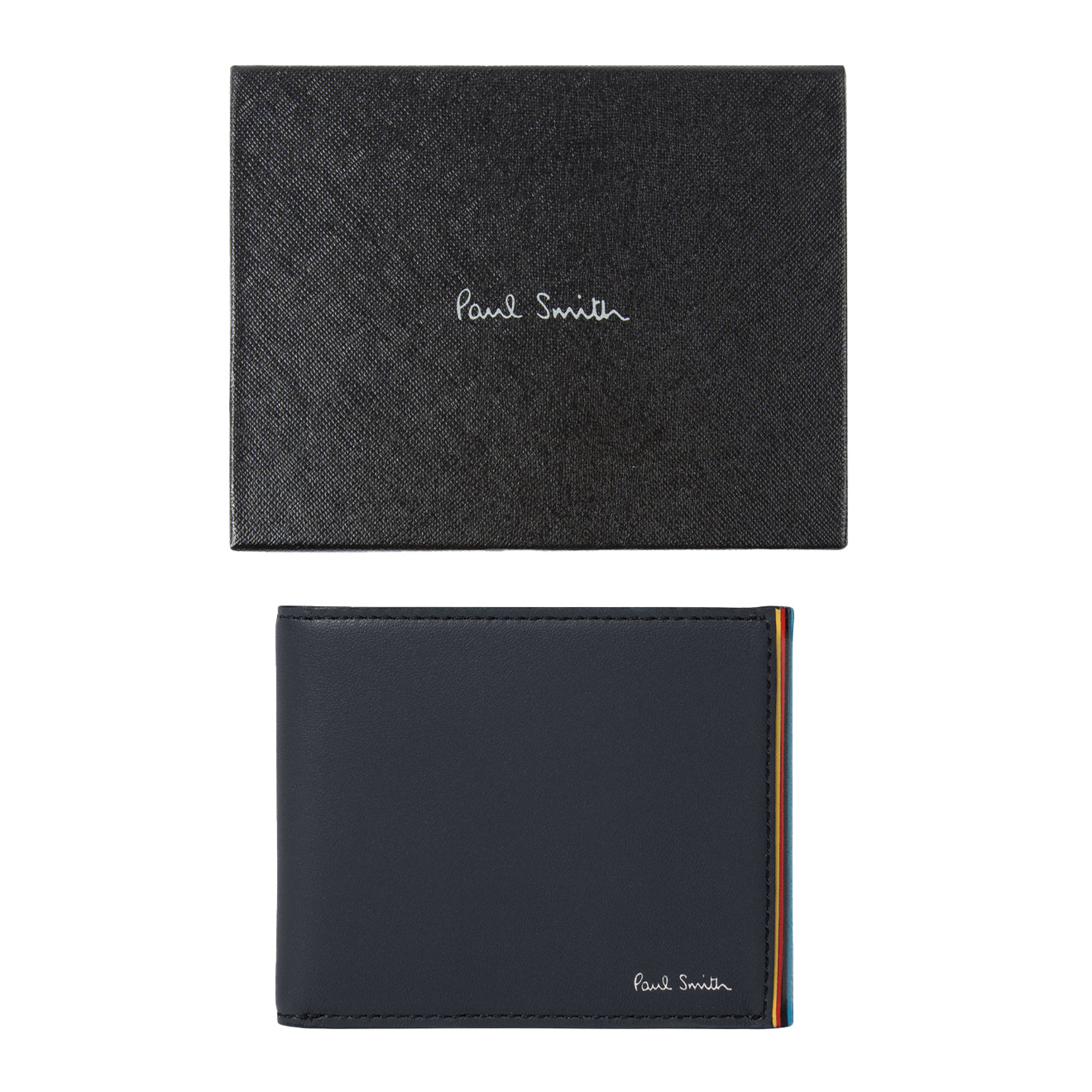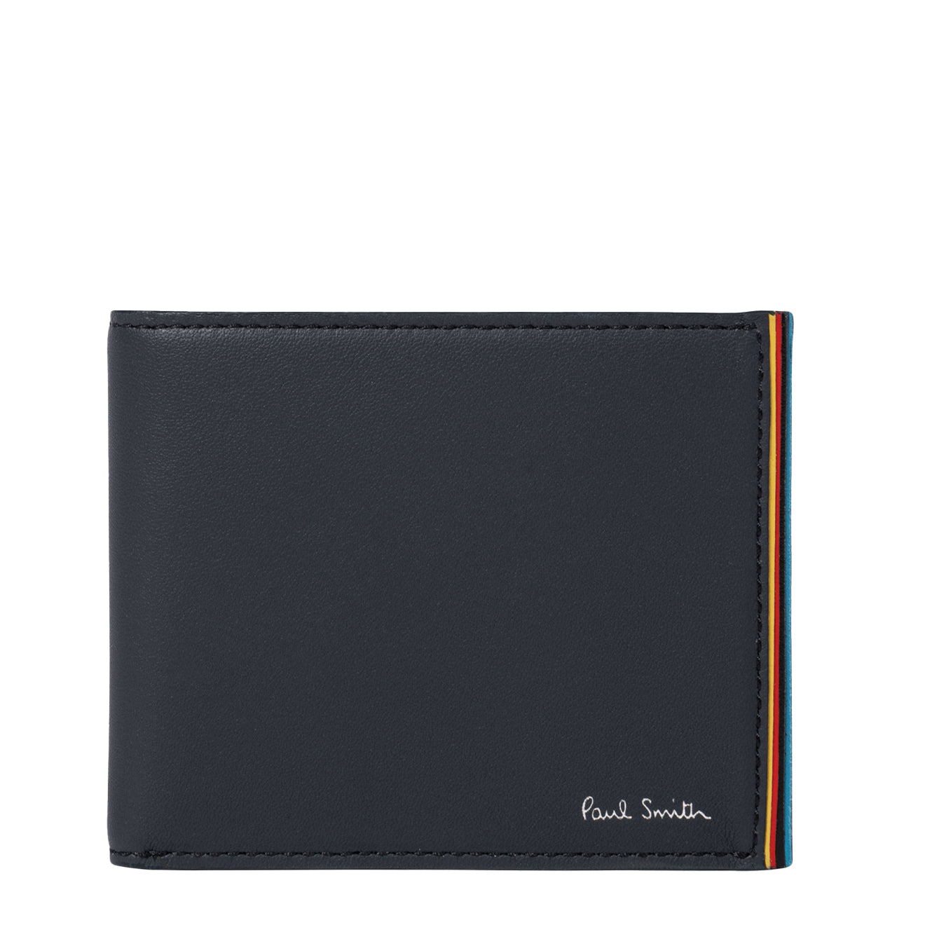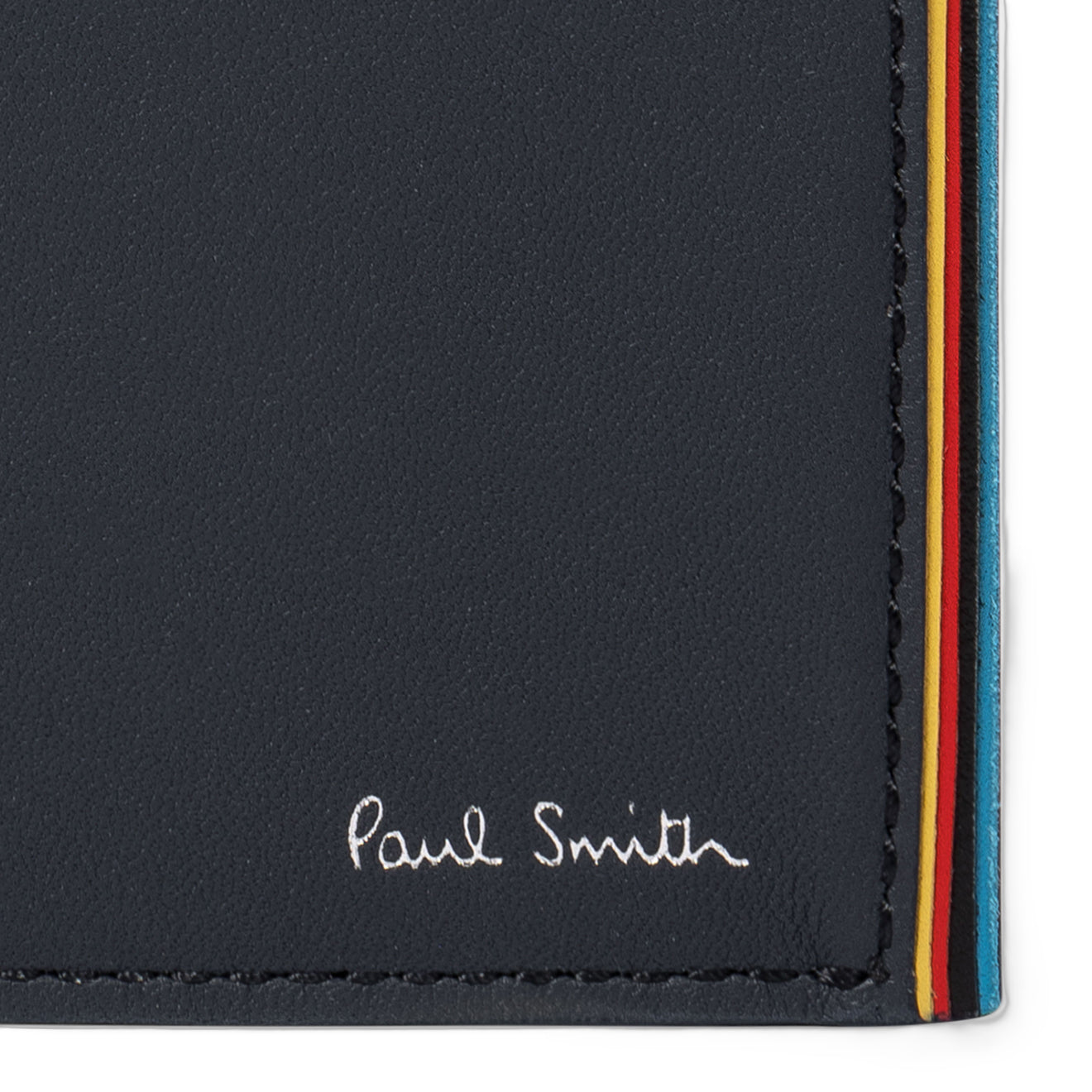 Diese in Italien gefertigte Brieftasche in Marineblau ist die perfekte Wahl für den Transport all Ihrer Alltagsgegenstände. Mit einem mehrlagigen Besatz aus Paul Smiths „Signature Stripe“ an den Rändern verfügt sie über sechs Kartenfächer und ein größeres Fach für Geldscheine und Quittungen.