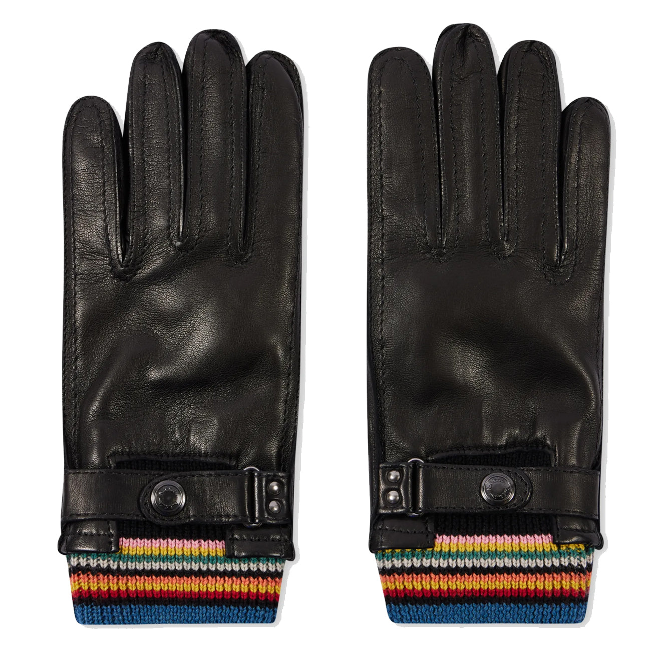 – Schwarze Lederhandschuhe mit Streifenmanschette