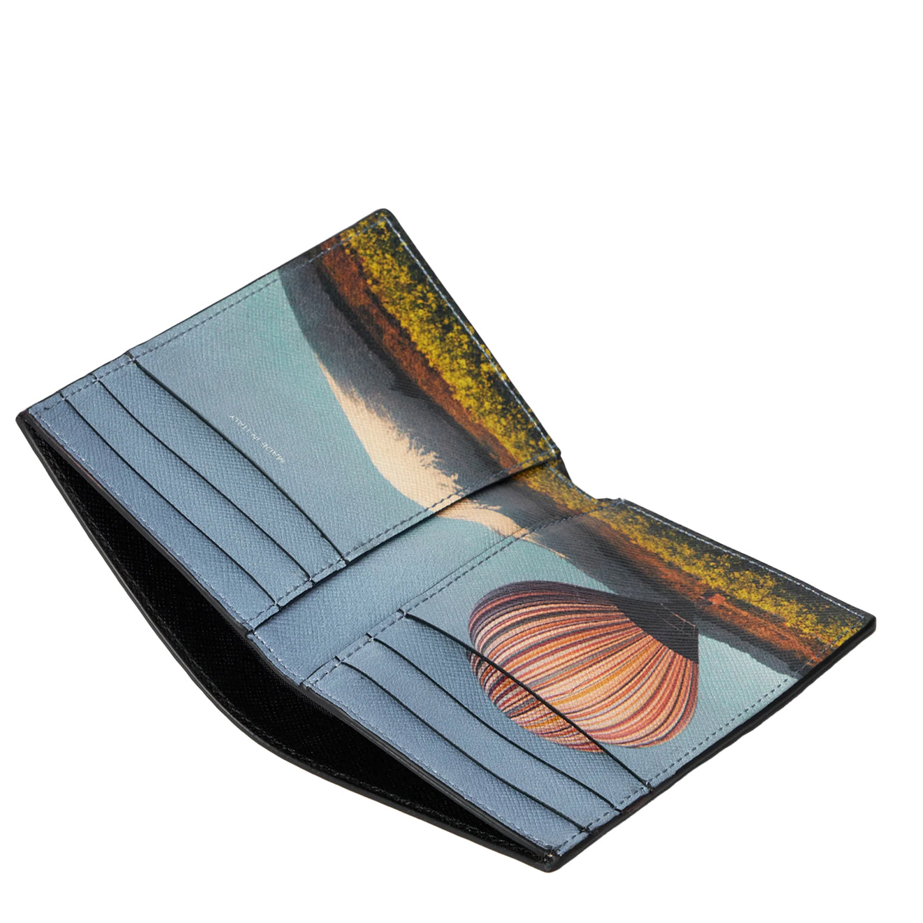 Normaler Preis €215,95Diese schwarze Brieftasche aus hochwertigem strukturiertem Leder wurde in Italien gefertigt und präsentiert sich innen mit einem stilvollen „Signature Stripe Balloon Mount Fuji“-Aufdruck. Sie vereint Eleganz mit Funktionalität und bietet reichlich Platz für Karten, Bargeld und kleine Utensilien und ist somit eine ausgezeichnete Wahl für den täglichen Gebrauch.