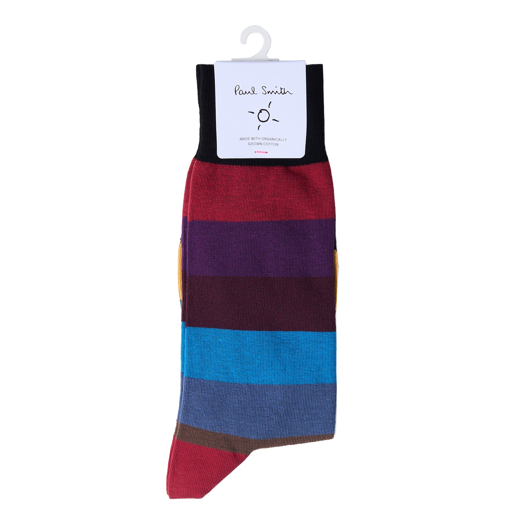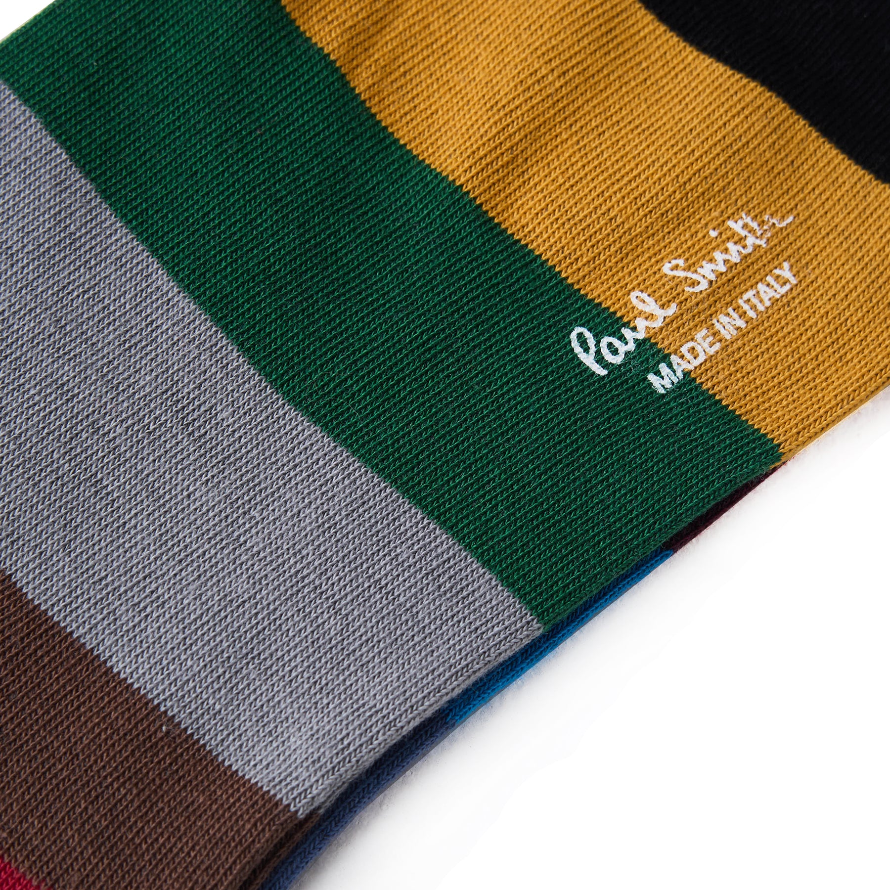 Diese Socke ist mit einem durchgehenden mehrfarbigen Streifenmuster verziert und verfügt über einen dezenten Markendruck auf der Sohle, der dem Alltagslook eine verspielte und doch raffinierte Note verleiht.