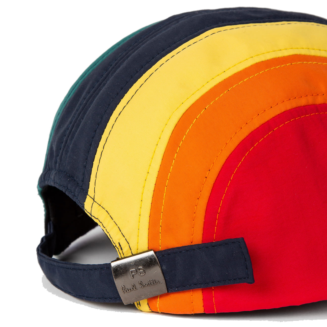 Die Paul Smith Rainbow Striped Cap verfügt über eine mehrfarbige Plattenkonstruktion mit einer Niete mit geprägtem Zebralogo.