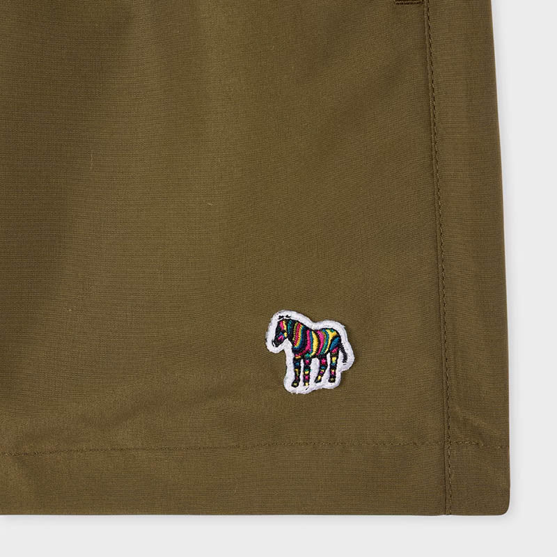Normaler Preis €87,95Die Paul Smith Zebra Logo Badeshorts in Militärgrün bestehen aus leichtem, schnell trocknendem Recycling-Polyester mit weicher Oberfläche. Sie sind auf Komfort und Stil ausgelegt, verfügen über eine netzgefütterte Innenseite und sind mit dem klassischen Zebra-Logo versehen.