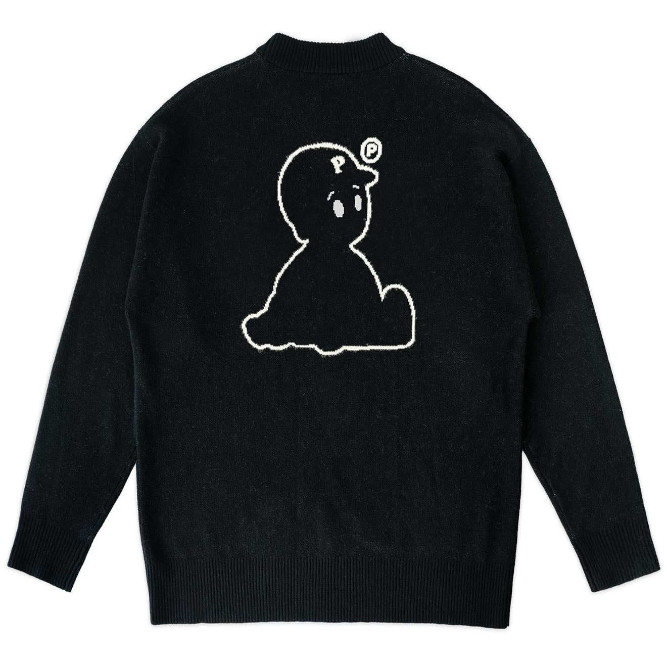 Normaler Preis €210,95Der schwarze Pawa Sports OG Boy Strickpullover besticht durch auffällige Grafiken, inspiriert von Pop-Art und Vintage-Cartoons. Das Markenmaskottchen ist in der Mitte abgebildet. Der Pullover besteht aus einem Baumwoll-Woll-Mix und hat einen Rundhalsausschnitt.