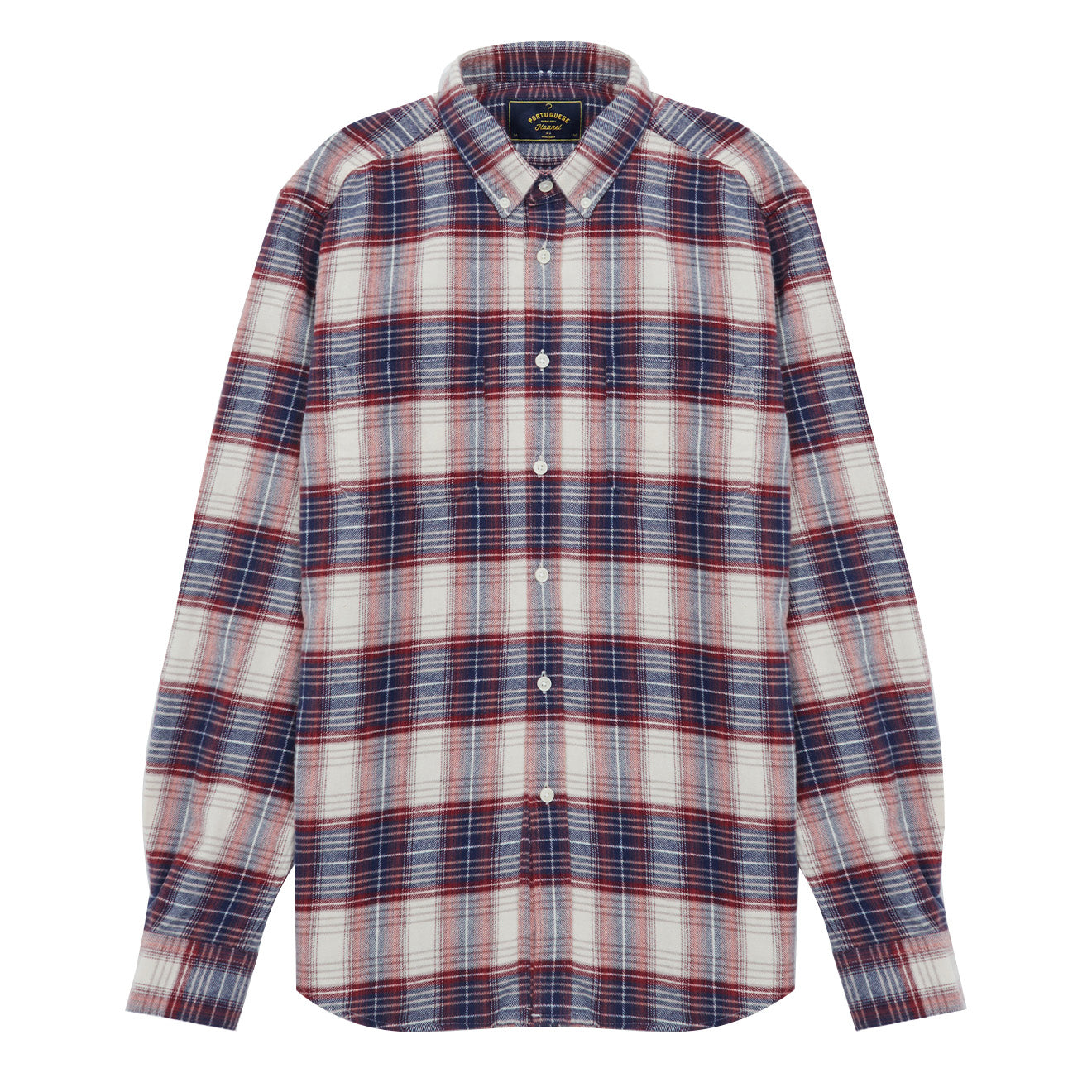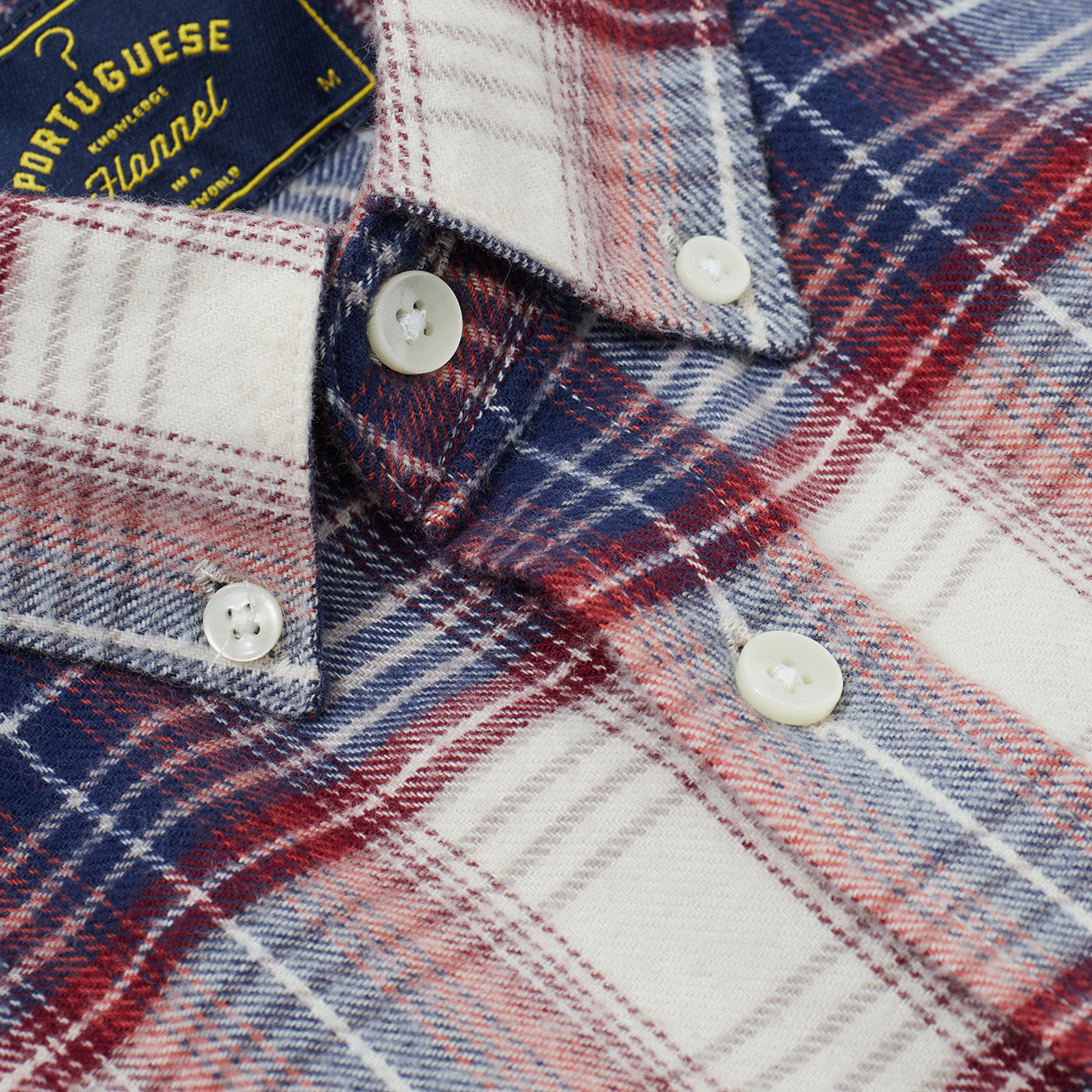Portugiesisches Flanellhemd Liber mit Button-Down-Kragen Ecru / Blau / Rot