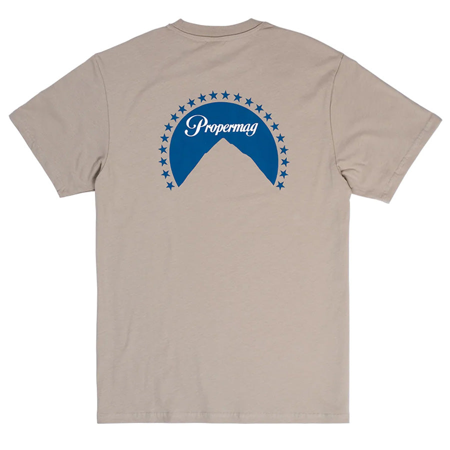 - Blau-weißer Aufdruck auf Vorder- und Rückseite mit dem Text „Propermag“