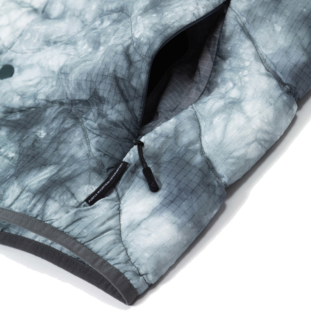 Normaler Preis €193,95 €105,95 Sparen 45% SonderpreisDiese graue Tie-Dye-Weste von Purple Mountain Observatory besteht aus 100 % Nylon mit einem Innenfutter aus 100 % Polyester. Das leichte, hochflorige Ice Dye Mini-Ripstop-Gewebe ist wasserabweisend (DWR) und antistatisch behandelt. Zu den Features gehören unsichtbare Reißverschlusstaschen unten, ein Druckknopfverschluss vorne und ein farblich abgestimmtes Brust-Branding.