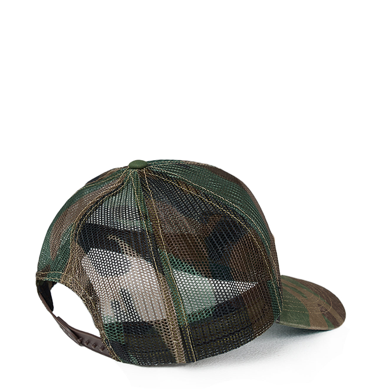 Diese Kappe im Woodland-Camouflage-Design verfügt über eine charakteristische grüne Schirmunterseite und einen verstellbaren Riemen auf der Rückseite für einen sicheren Sitz. Sie verbindet robusten Stil mit praktischem Design für den Alltag.
