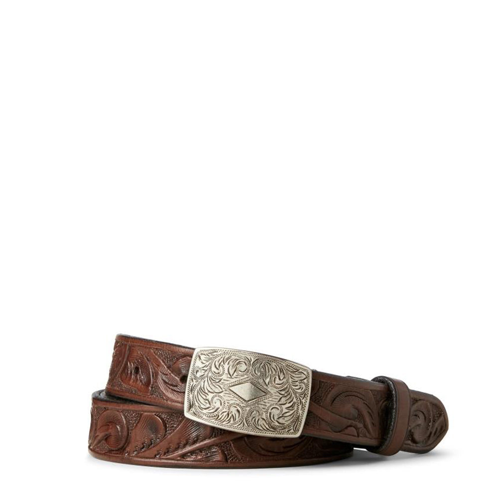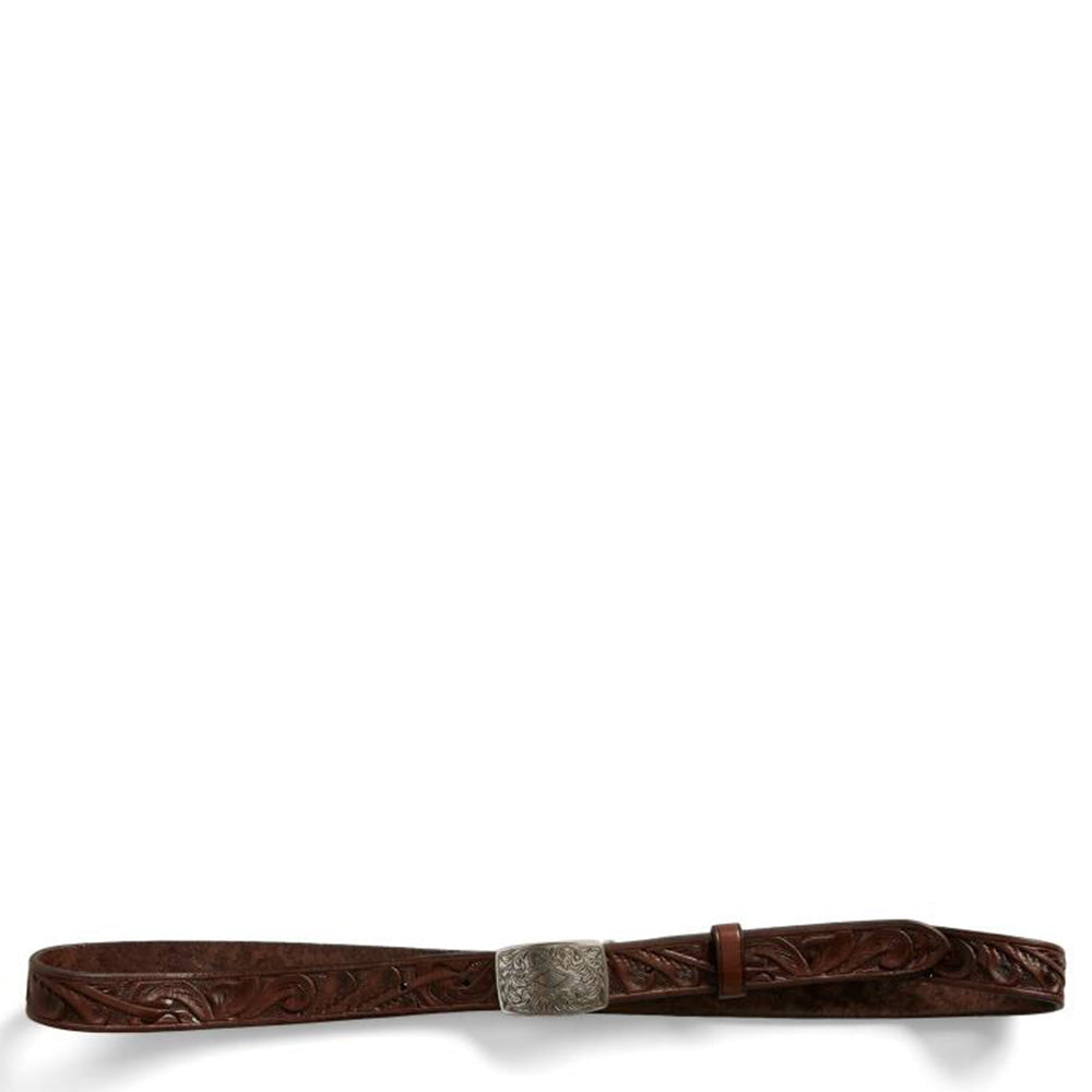 Normaler Preis €277,95Der RRL Casual Coleman Gürtel wurde aus pflanzlich gegerbtem amerikanischem Leder gefertigt und von Hand mit dem ikonischen Blumenmuster von Double RL versehen. Abgerundet wird das Ganze durch eine handgravierte Messing-Schiebeschnalle mit Vintage-Silber-Finish.