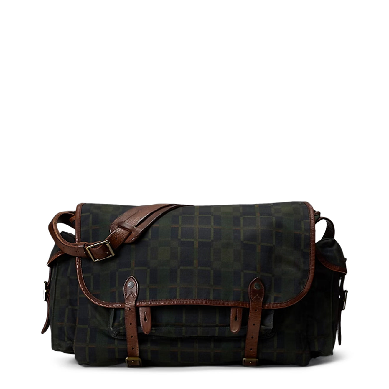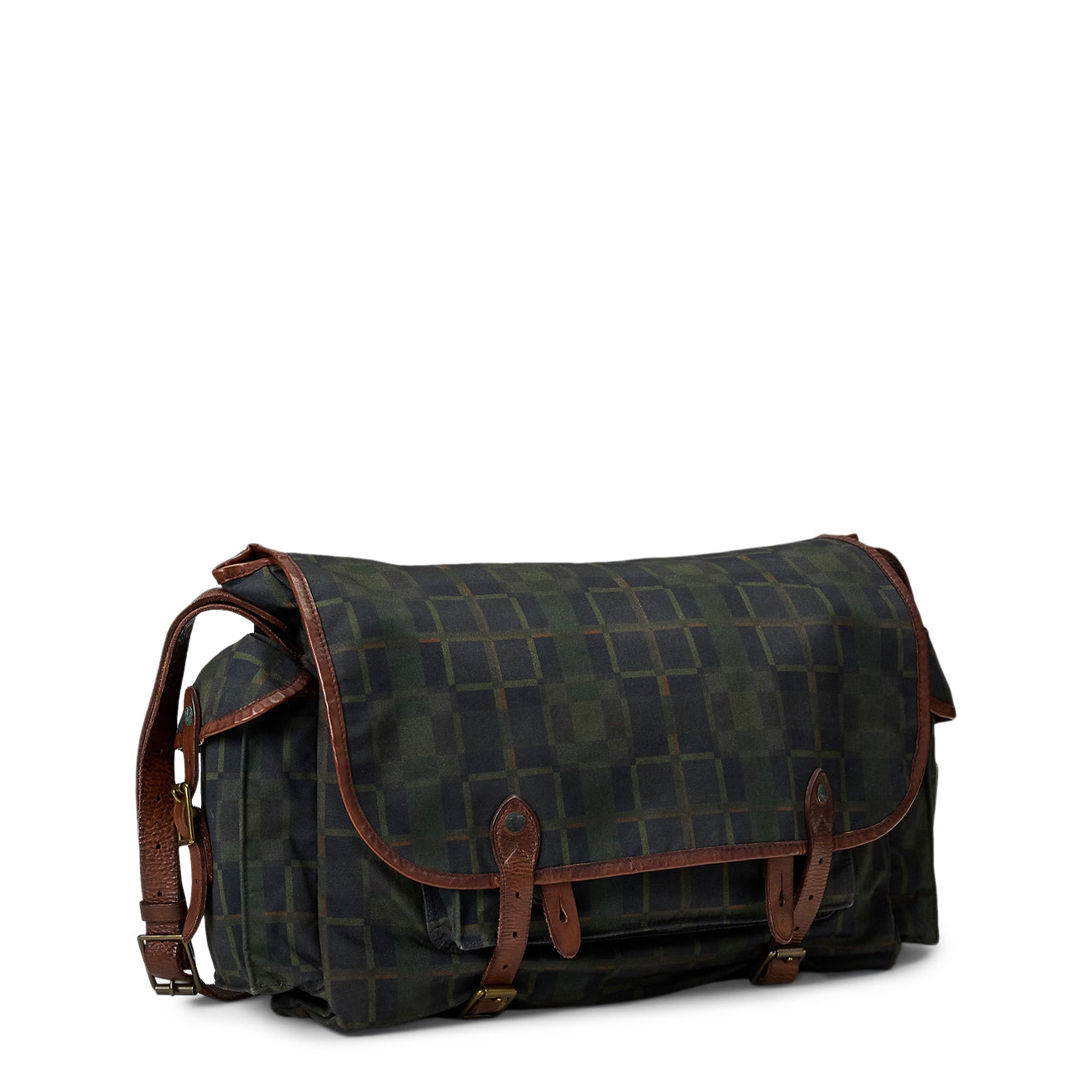 RRL By Ralph Lauren Umhängetasche aus Wachstuch mit Karomuster, Marineblau/Mehrfarbig