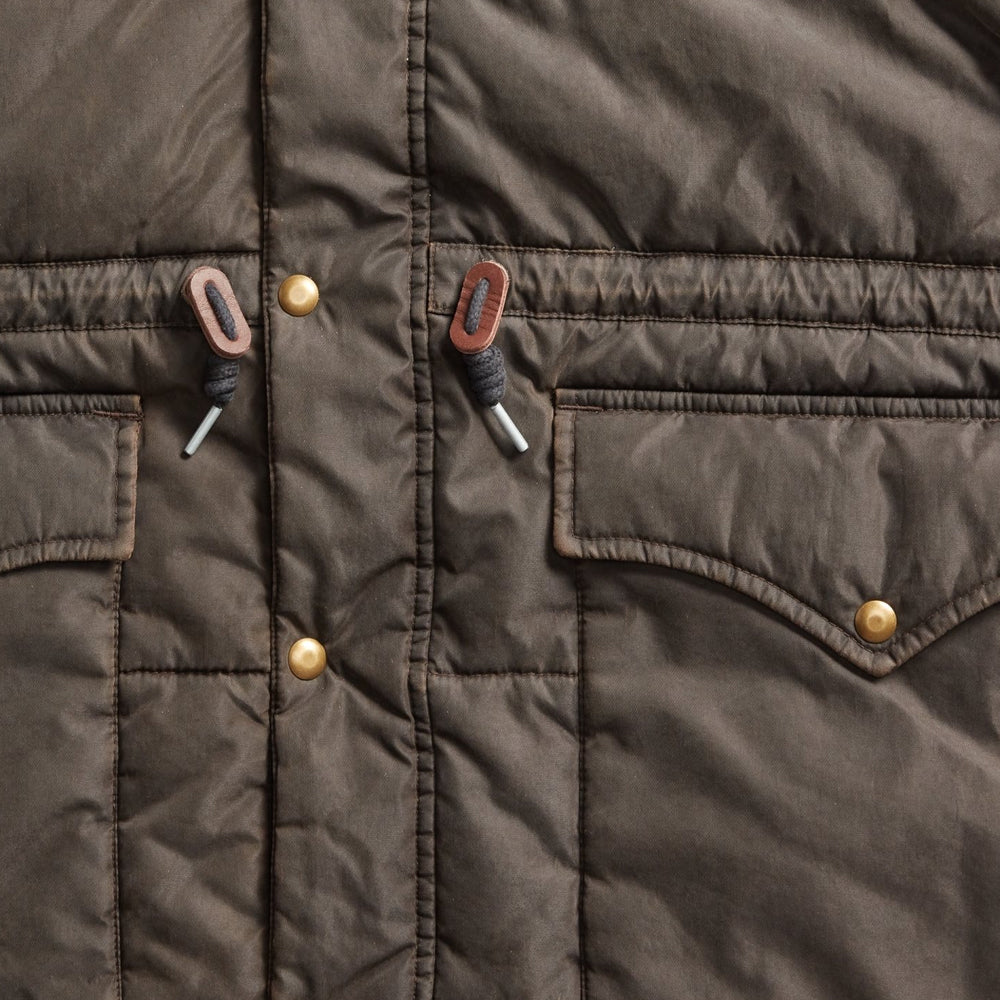 Dieser Coated Twill Parka von RRL by Ralph Lauren erinnert an Bergsteiger- und Expeditionskleidung der 60er Jahre und ist ein absolutes Must-have. Hergestellt aus hochflorigem Fleece, mit einer vollständig gefütterten und isolierten Daunenfüllung und Lederstoppern. Stark gewaschen für einen zeitlosen Look und Tragekomfort.