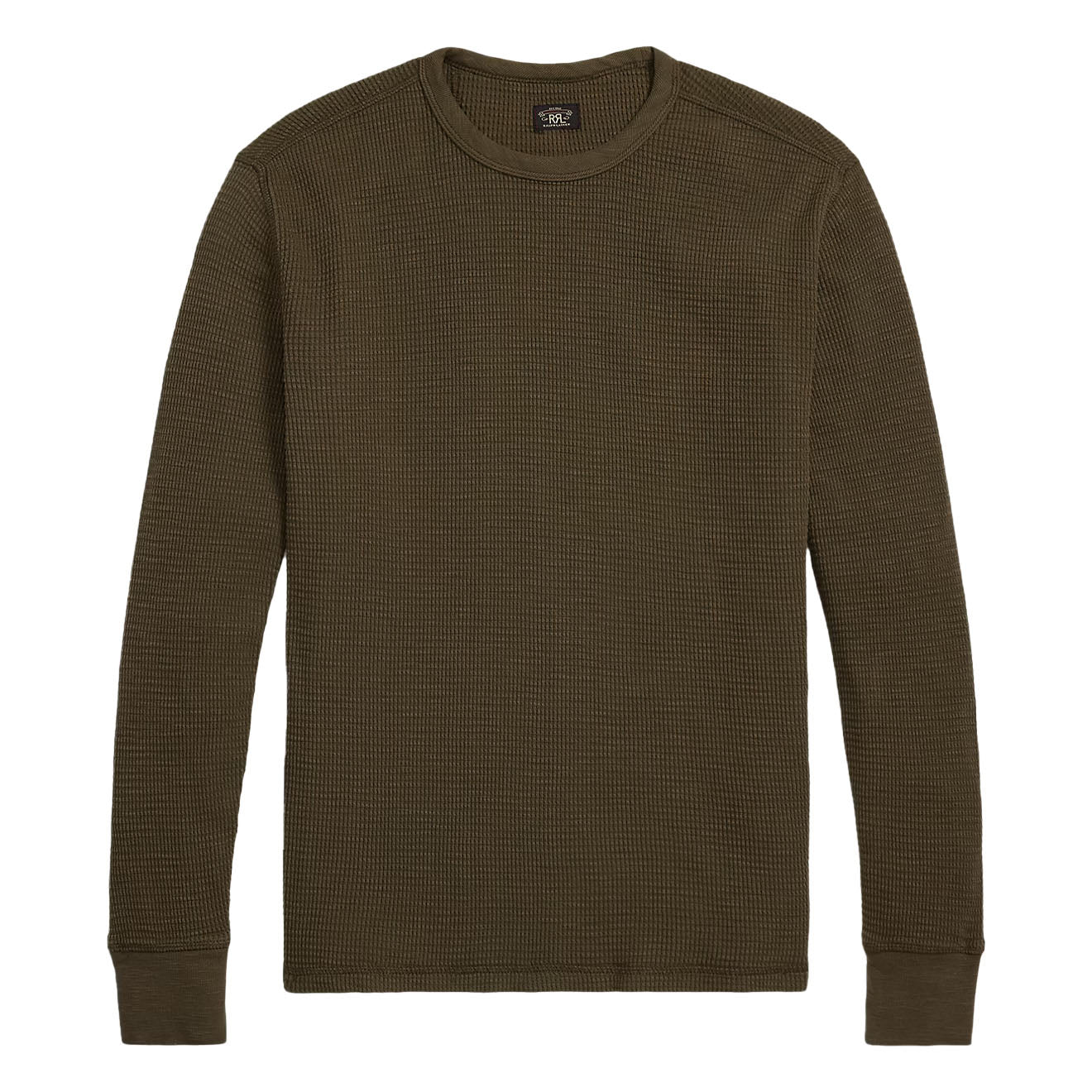 RRL By Ralph Lauren – Rundhalspullover aus stückgefärbtem Waffelstrick in Olivbraun