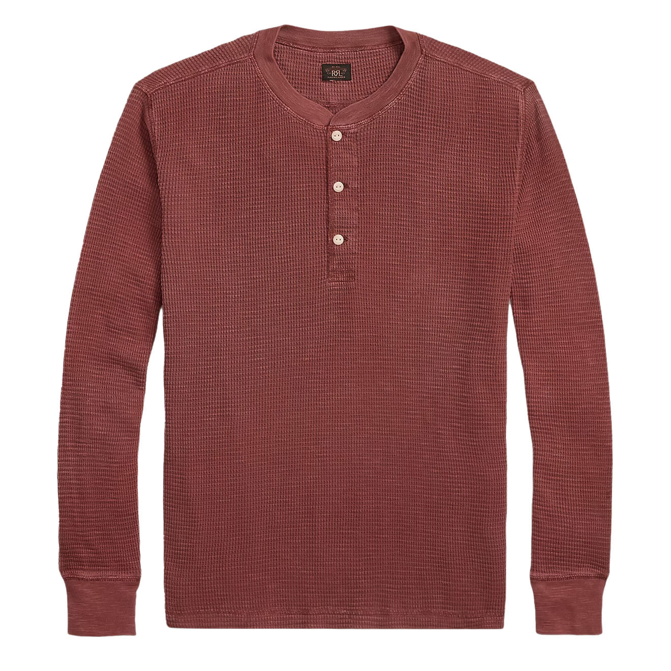 RRL By Ralph Lauren Henley-Shirt aus stückgefärbtem Waffelstrick in Weinrot