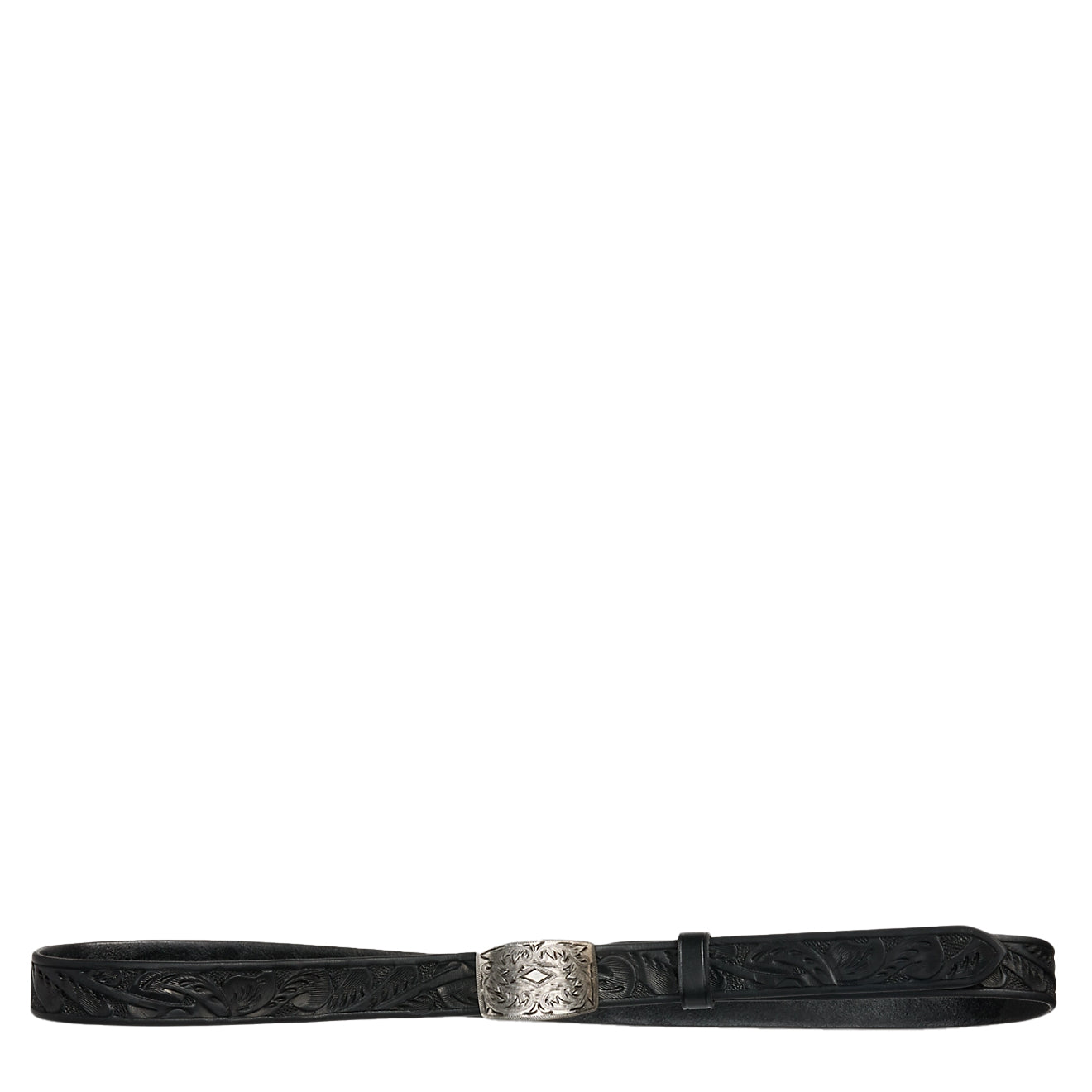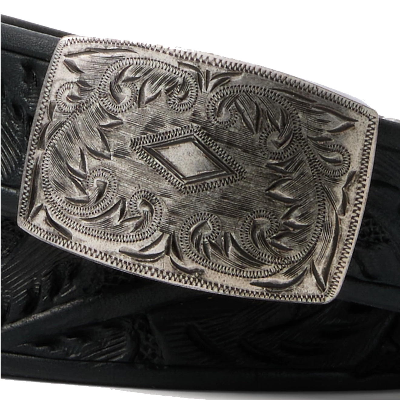 - Handgravierte Schiebeschnalle aus Messing mit Vintage-Silber-Finish.