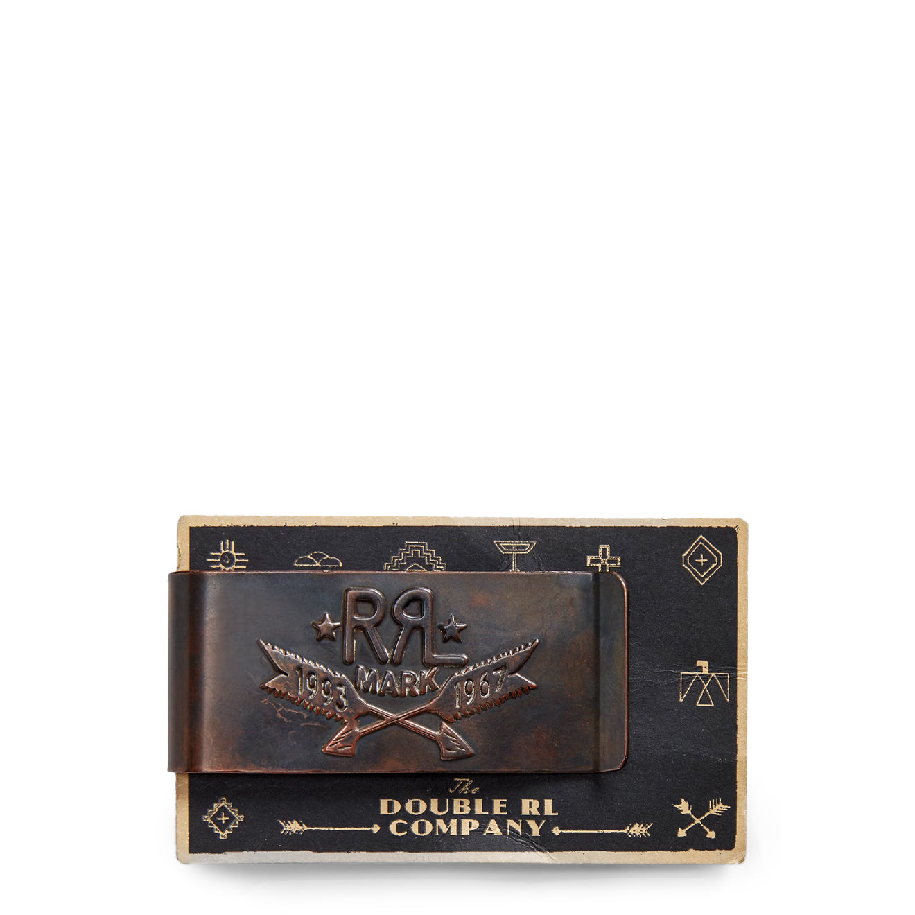- „RRL Mark 1993 1967“ und gekreuzte Pfeile auf der kupferfarbenen Metallrückseite.