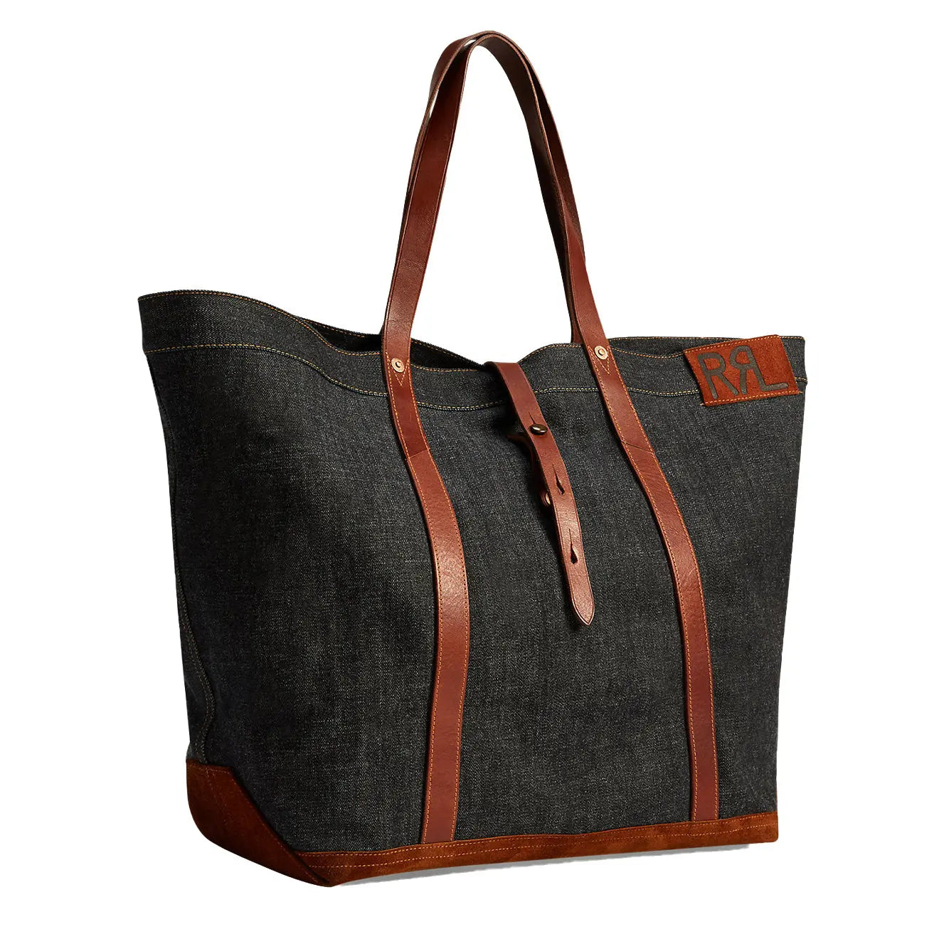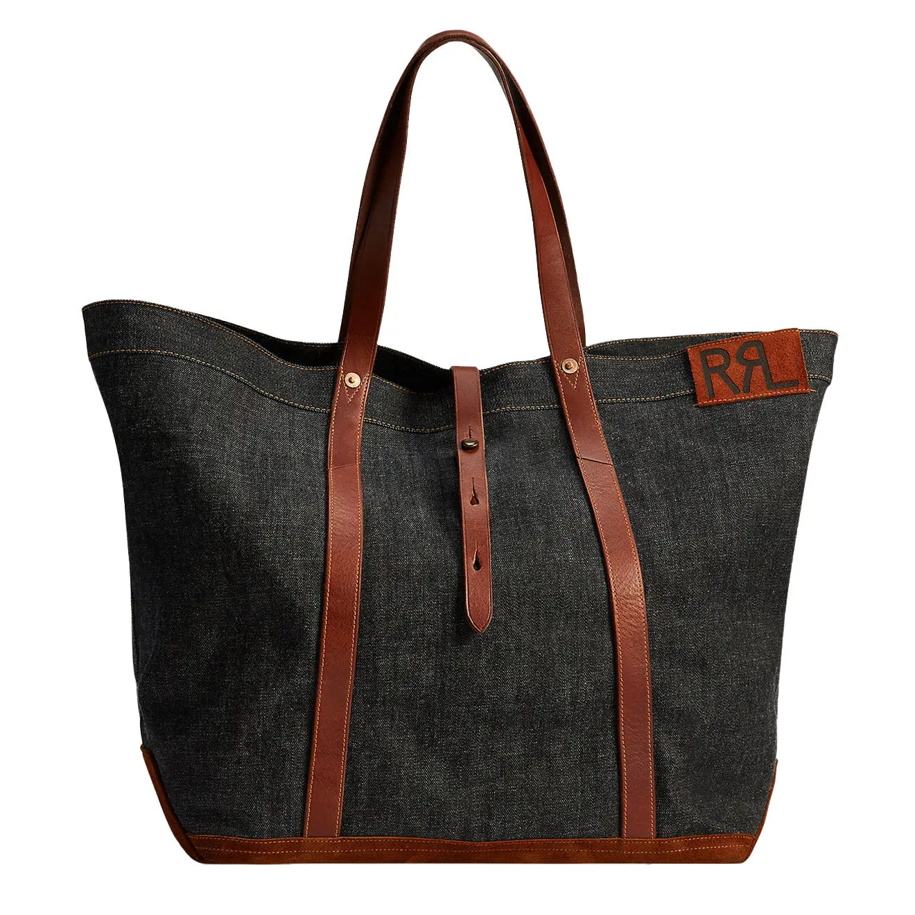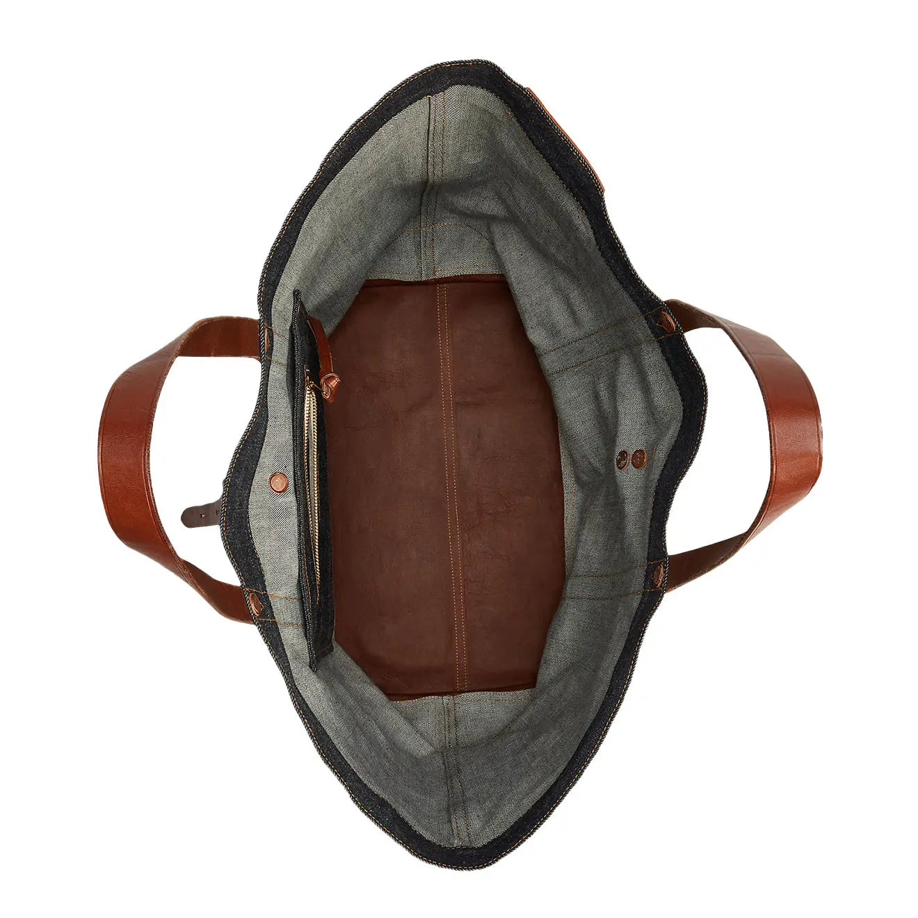 – Denim-Tasche mit Lederbesatz in Indigoblau