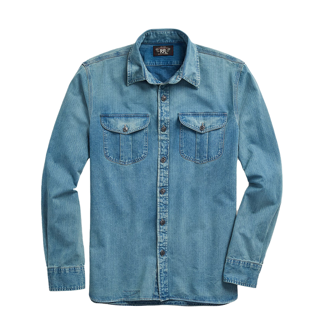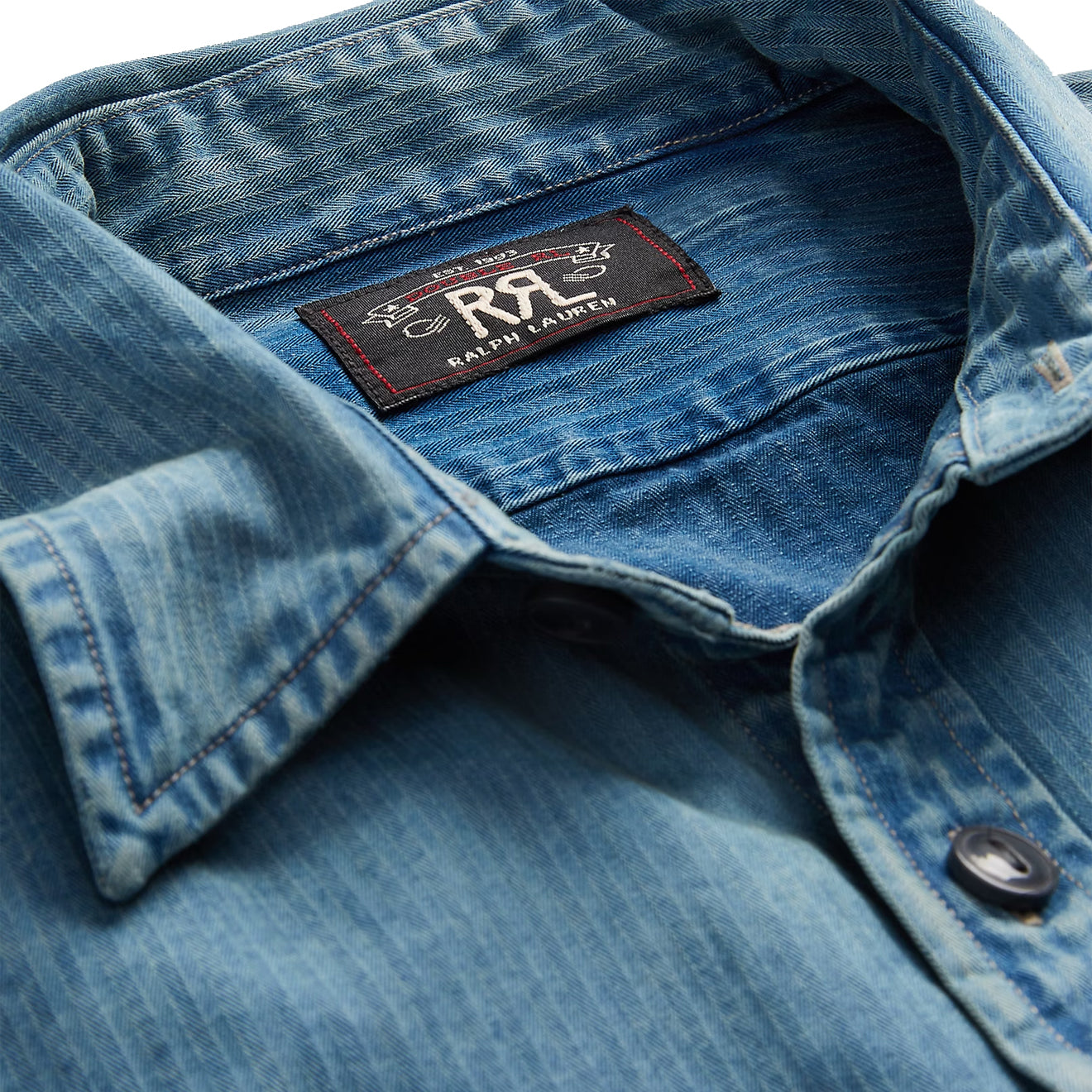 RRL By Ralph Lauren – Arbeitshemd aus Twill mit Fischgrätenmuster in Indigoblau, verblasstes Indigo