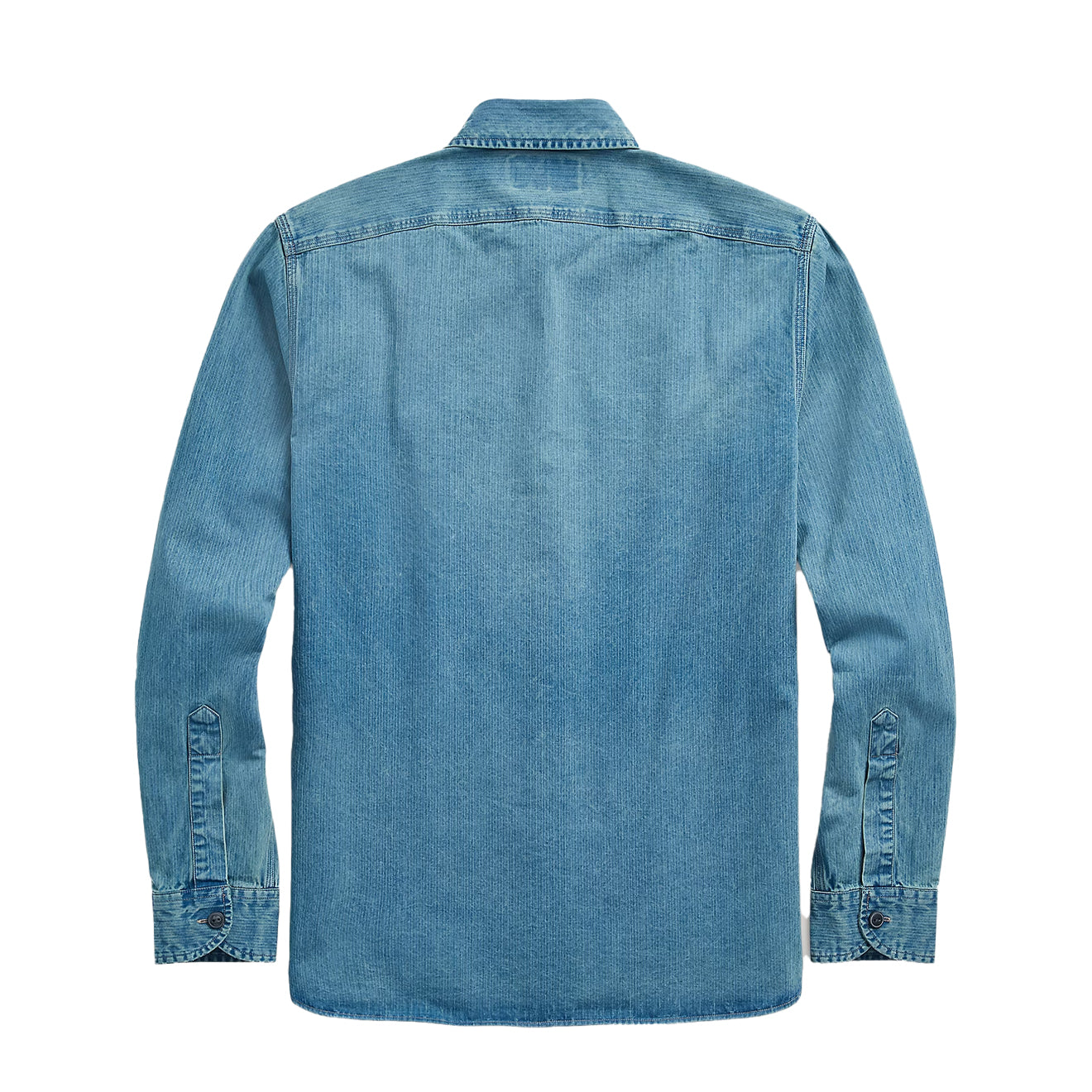 Das Hemd ist stark gewaschen, um einen zeitlosen Look und ein zeitloses Tragegefühl zu erzielen. Vintage-inspirierte Knöpfe unterstreichen seinen nostalgischen Reiz. Dieses Arbeitshemd in verblichenem Indigoblau bietet einen robusten und dennoch raffinierten Stil, perfekt für den Alltag.