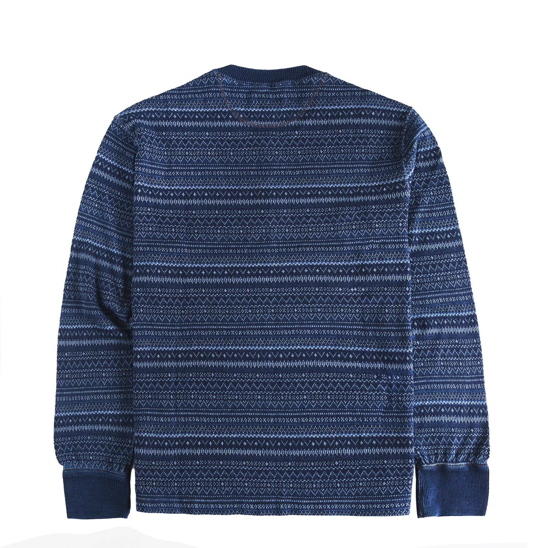 RRL By Ralph Lauren – Langärmliger Jacquard-Henley-Pullover Indigo / Mehrfarbig