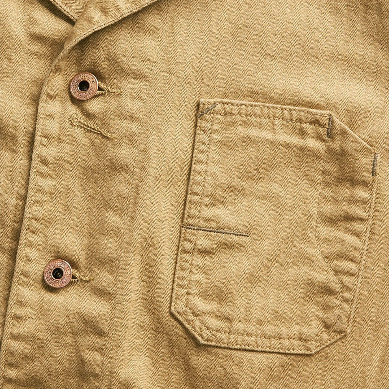 Normaler Preis €620,95Die Arbeitsjacke von RRL by Ralph Lauren mit Fischgrätenmuster besteht aus japanischem Leinen-/Baumwollstoff. Inspiriert vom klassischen Arbeitsmantel und mit aufgesetzten Taschen.