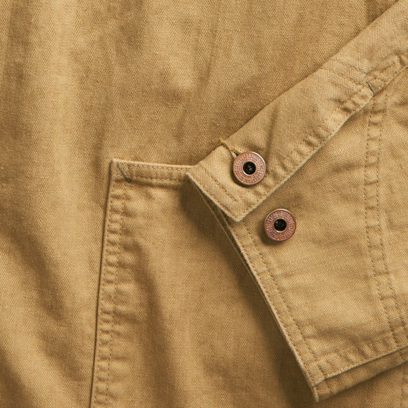- In den USA hergestellte kupferfarbene Metallknöpfe mit Used-Look