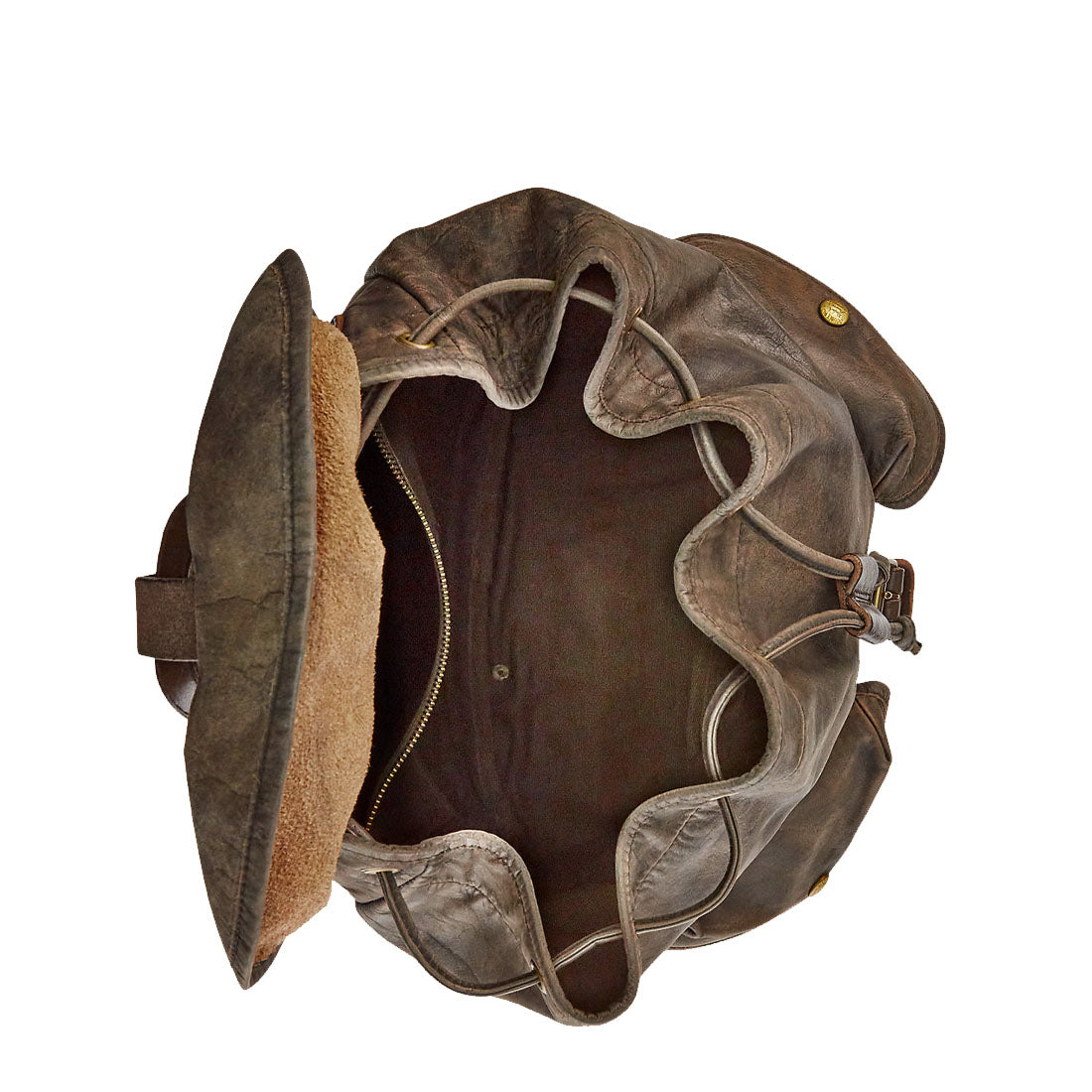Kultiges Rucksackmodell aus leichtem, geschmeidigem Büffelleder. Pflanzlich gegerbter Rindslederbesatz. Handgefertigt für einen zeitlosen Look. Messingbeschläge und kupferfarbene Nieten im Used-Look.