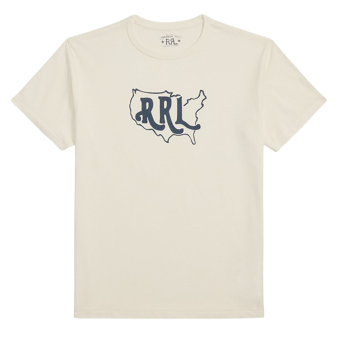 Normaler Preis €135,95Das RRL By Ralph Lauren Logo-T-Shirt aus Baumwoll-Hanf-Jersey in Warmweiß. Dieses bequeme T-Shirt ist aus Baumwoll- und Hanf-Jersey gefertigt und verfügt auf der Vorderseite über eine Logografik mit einem wasserbasierten Aufdruck der USA-Umrisse.