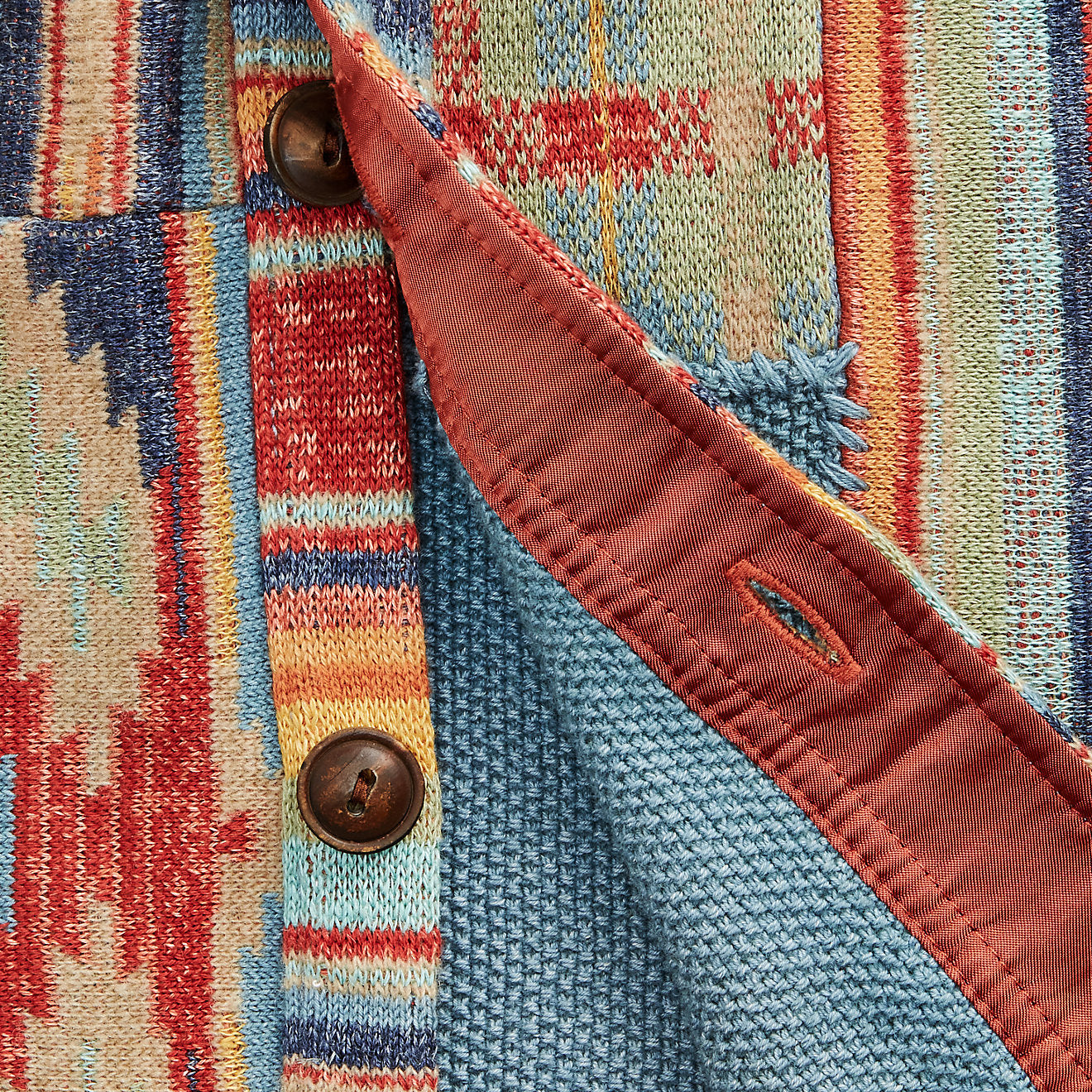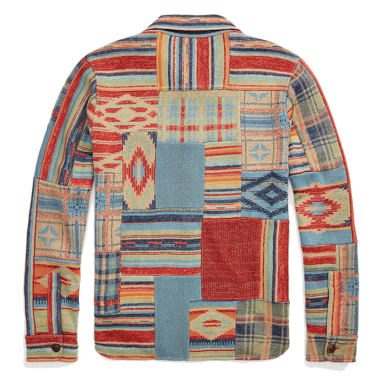 – Patchwork-Arbeitshemdpullover in Rost- und Bunt