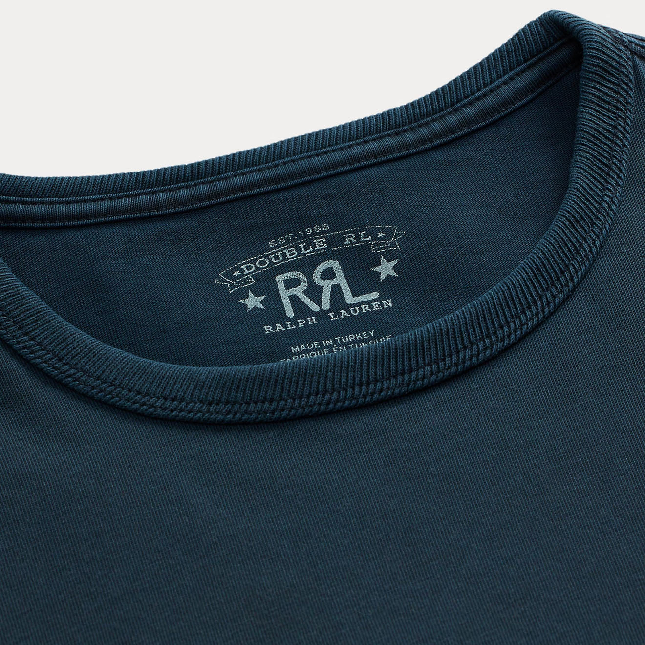 Normaler Preis €134,95 €107,95 Sparen 20% SonderpreisDas RRL By Ralph Lauren Relaxed Fit Heavyweight Jersey T-Shirt in Dark Navy ist aus strapazierfähigem, schwerem Baumwolljersey gefertigt. Es verfügt über einen Rundhalsausschnitt im schrägen Rippenmuster und eine Kettenstich-Stickerei des Double RL Ranch-Logos am Saum.
