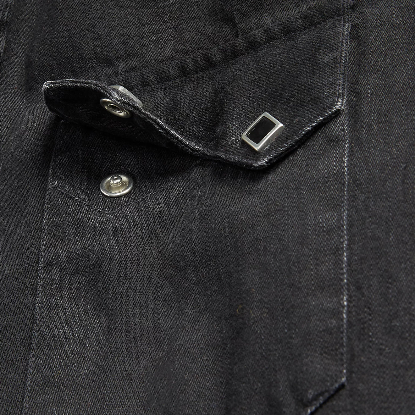 - Gerader Kragen mit Metallknopf vorne. Knopfleiste mit Druckknöpfen. Passe vorne und hinten im Westernstil.