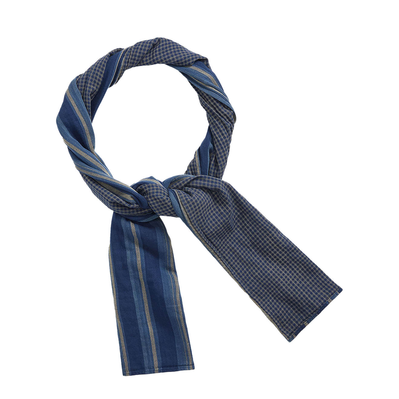 RRL By Ralph Lauren – Gestreifter doppelseitiger Baumwollschal, Indigoblau, mehrfarbig gestreift/kariert