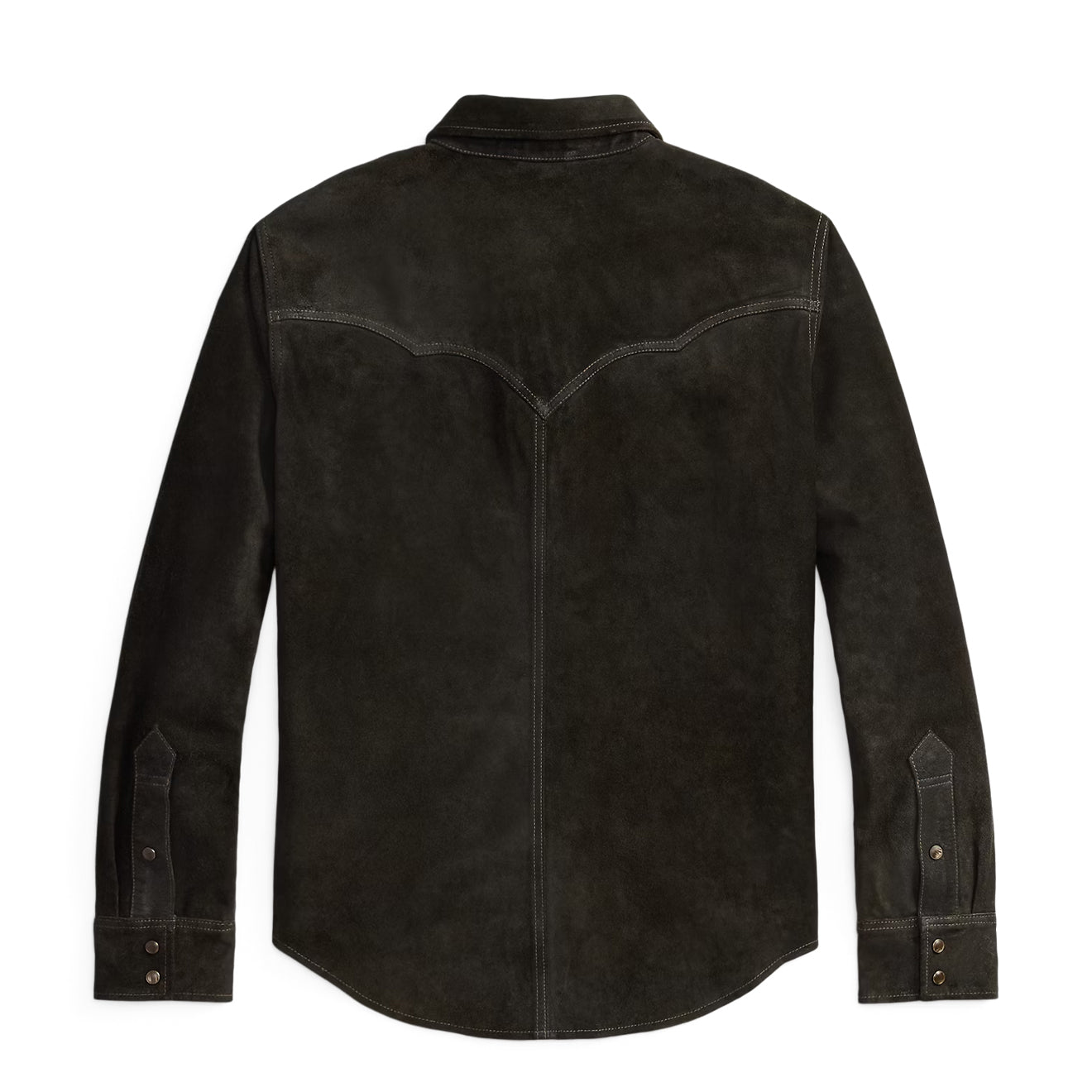 Normaler Preis €1.993,95The RRL By Ralph Lauren Suede Western Shirt Jacket in Vintage Black is crafted from rugged roughout suede and specially developed for a time-worn, heritage look. Inspired by classic Western silhouettes, it features traditional yoke detailing and snap fastenings, combining authentic styling with refined construction and practical pocketing.