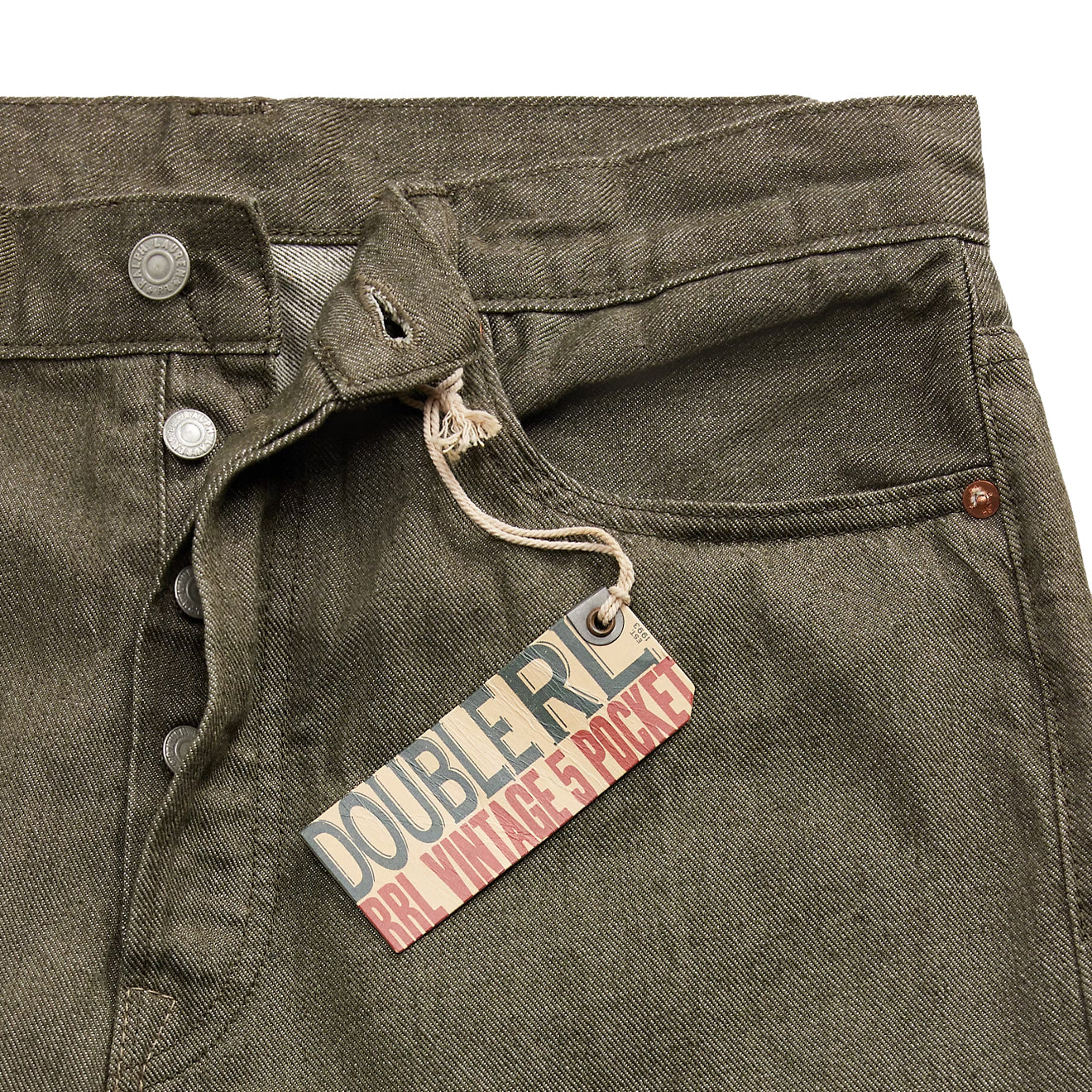RRL By Ralph Lauren Vintage – 5-Pocket-Jeans in Olivgrün mit Selvedge-Muster in Olivgrün