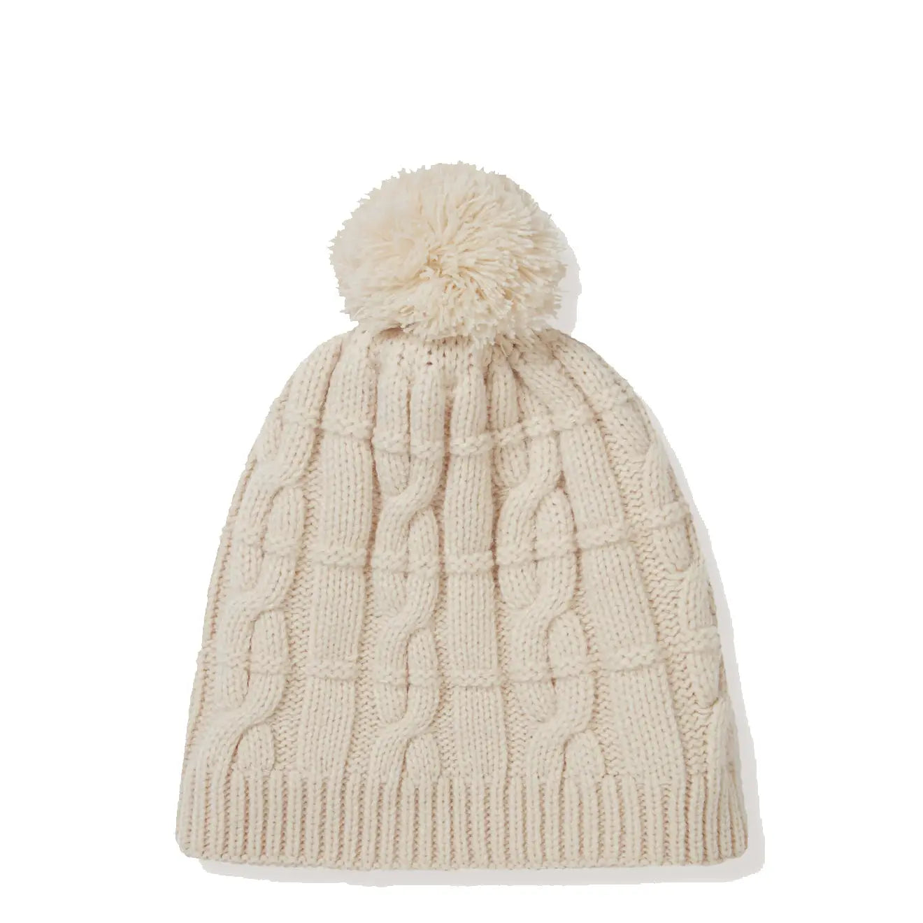 Hemsby WP CW Bommelmütze mit Zopfmuster, Creme