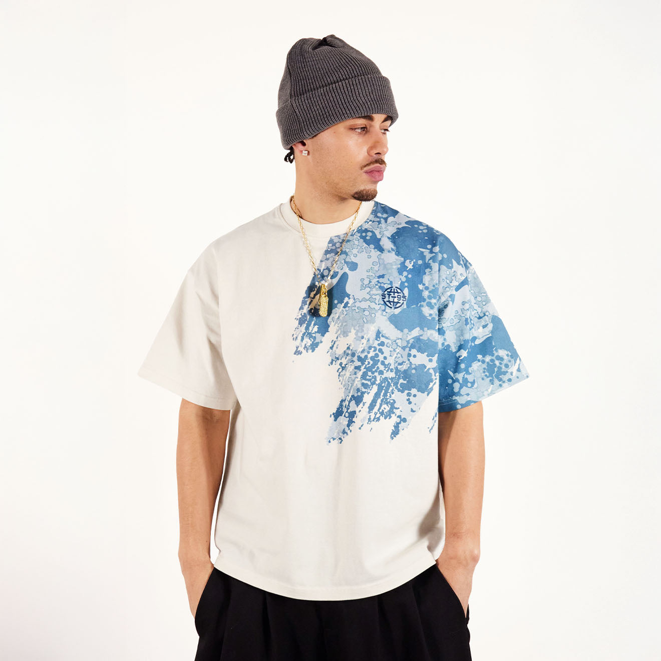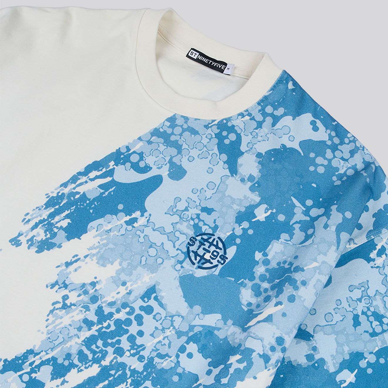 Normaler Preis €111,95The ST-95 x Anna Bergonzini Part Camouflage T-Shirt in Off White celebrates the brand’s 30th anniversary by revisiting its graphic roots with a modern twist. Created in collaboration with Anna Bergonzini, the first designer to shape ST95’s visuals alongside Massimo Osti, this T-shirt features an all-over digital camouflage print reinterpreted from archival designs. The boxy fit and 290 GSM cotton jersey give structure and weight, while the subtle vinyl logo at the chest and side seam tab add understated branding.