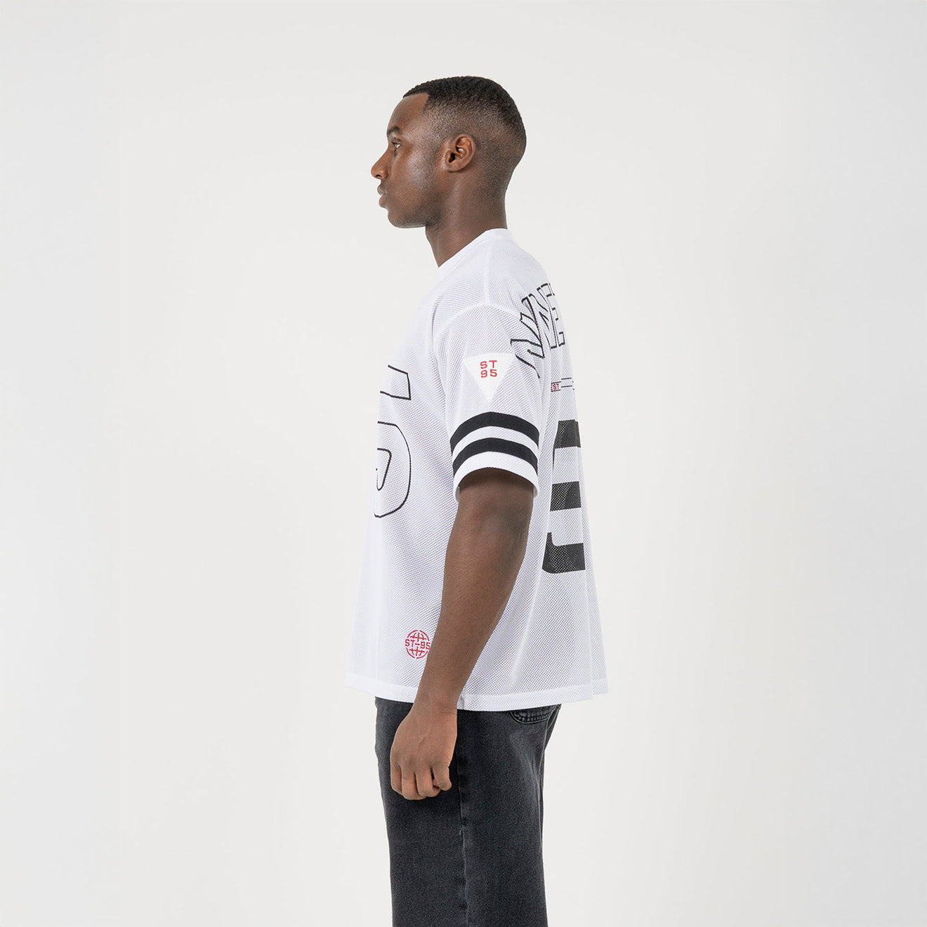 Das Anniversario Sportshirt greift die sportliche Tradition von ST95 auf und interpretiert sie für die heutige Zeit neu – zu Ehren von drei Jahrzehnten der Marke. Das Trikot aus atmungsaktivem, recyceltem Polyesternetz ist mit dem legendären ST95-Globus-Logo und Archivlogos verziert und zollt so der 30-jährigen Tradition der Marke Tribut. Es ist auf Leistung und Stil ausgelegt und verkörpert den Geist moderner Sportbekleidung mit einem raffinierten Touch.