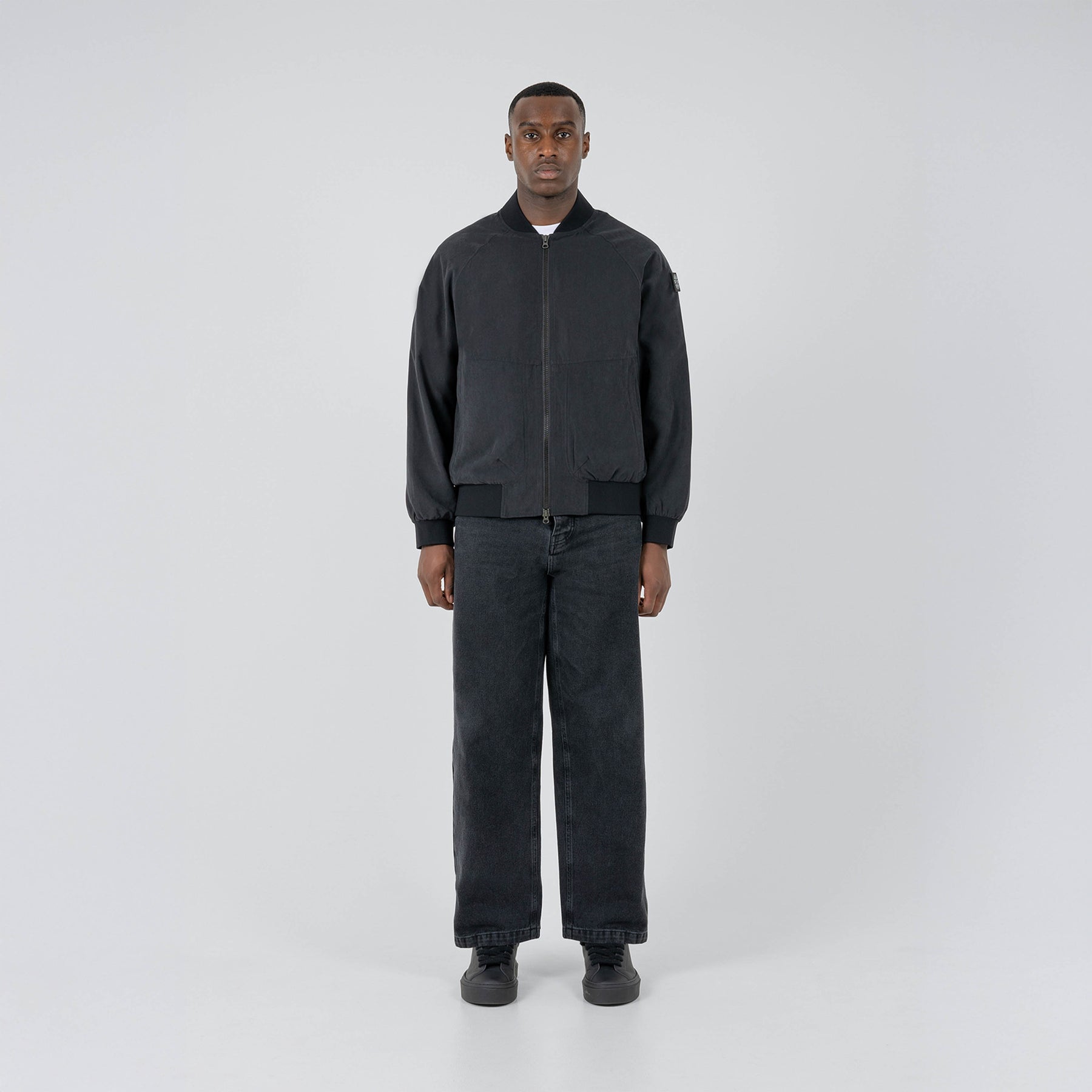 The Brenta Bomber is a relaxed-fit lightweight jacket crafted from a 92% polyester, 8% nylon blend with a soft peached finish. Designed for practicality and style, it is water-resistant and features two hand pockets with YKK zippers. A silicone ST95 globe patch on the left arm adds a signature touch, giving a modern update to the classic bomber silhouette.
