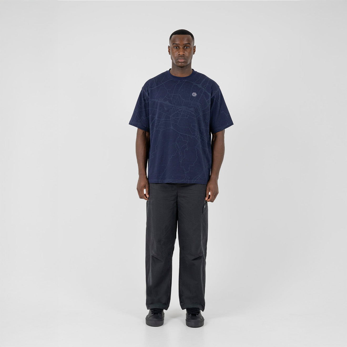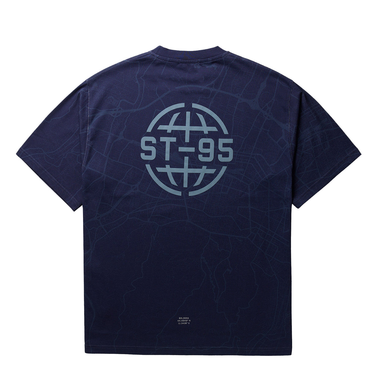 Normaler Preis €111,95Das Lugano Map T-Shirt hat einen kastig geschnittenen Schnitt und ist aus marineblauem Baumwolljersey gefertigt. Es ist mit einem Allover-Print des Stadtplans von Bologna versehen und verfügt über ein auffälliges, übergroßes ST95-Globus-Logo auf der Rückseite und einen kleineren Brustaufdruck auf der Vorderseite. Als Statement-Piece verbindet es das italienische Erbe der Marke mit einer modernen grafischen Umsetzung.