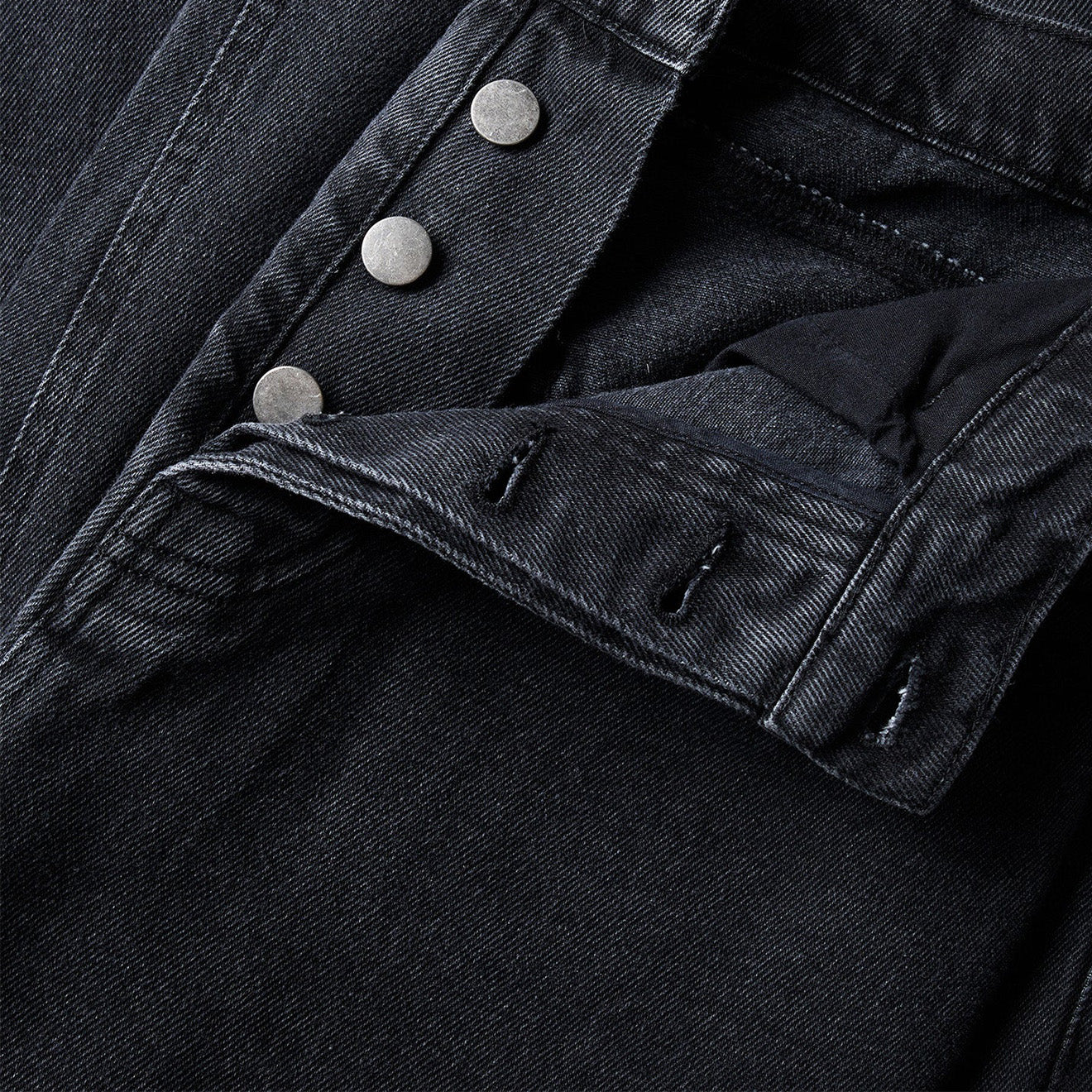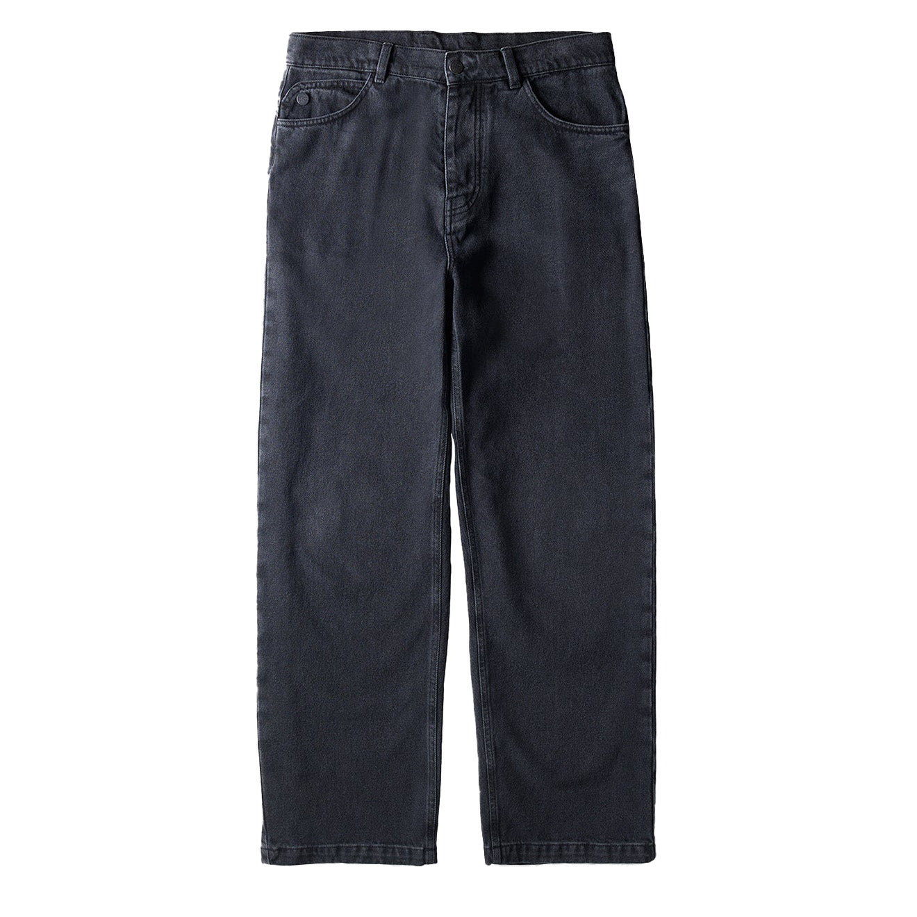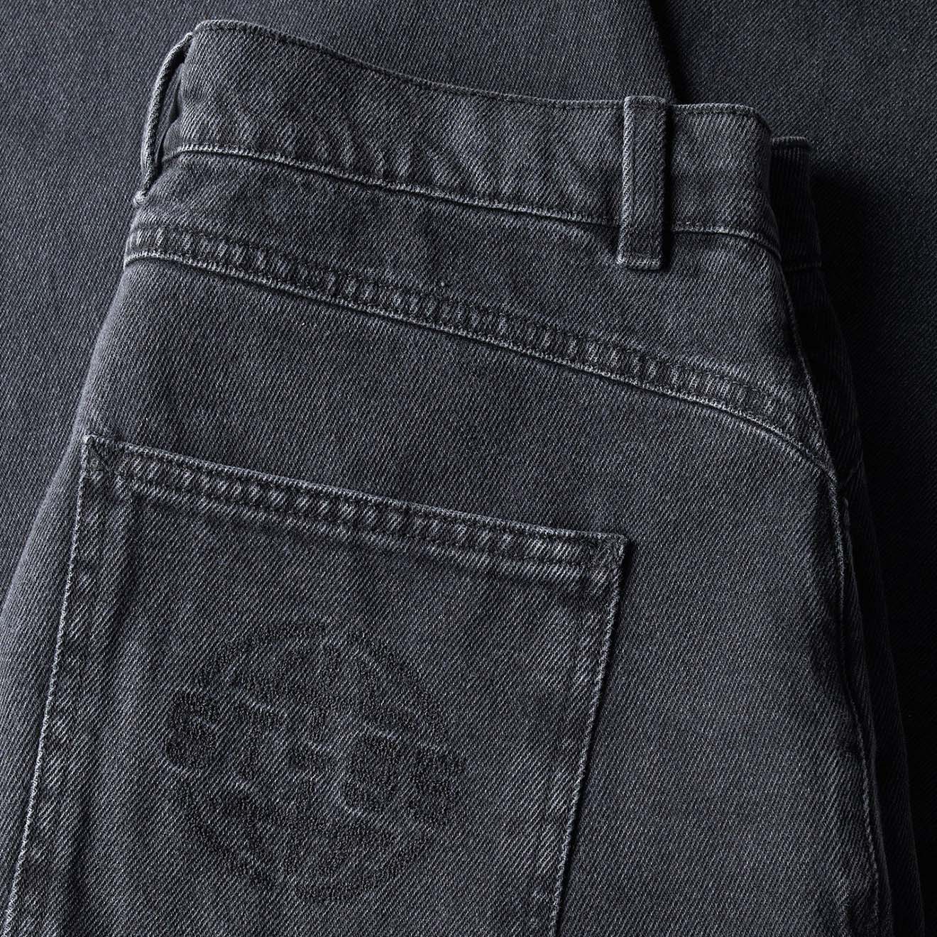 Die Volturno Jeans präsentiert eine entspannte, weite Silhouette in der ersten Denim-Kollektion von ST95. Hergestellt aus 13 oz (400 g/m²) Denim aus 80 % Baumwolle und 20 % recycelter Baumwolle, ist das Modell in einem verwaschenen Schwarzton gehalten, der für einen eingetragenen Look sorgt. Zu den Details gehören ein Hosenschlitz mit Markenknöpfen und ein farblich abgestimmtes, gesticktes Globus-Logo auf der Gesäßtasche, das die Identität der Marke unterstreicht und gleichzeitig klassische Denim-Design-Codes aufgreift.