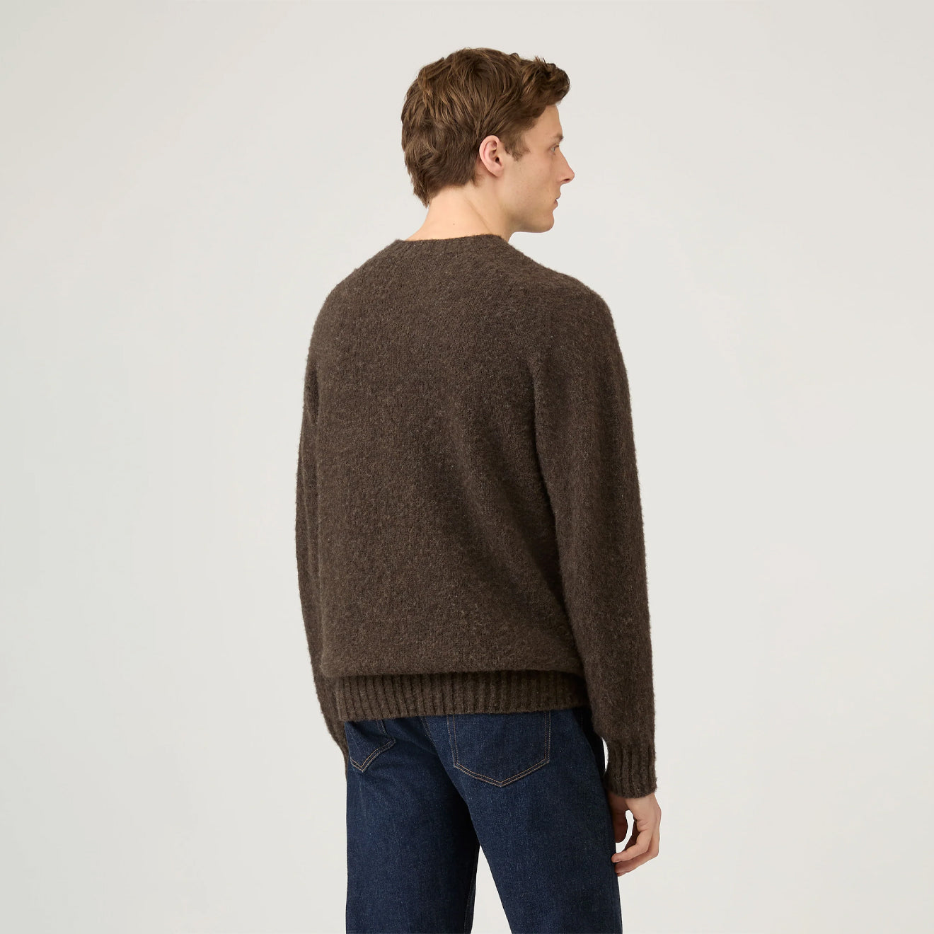 Normaler Preis €257,95Der Sunspel Brushed Shetland Crew Neck in Bark wird in Schottland aus weicher Lammwolle gestrickt und für zusätzliche Wärme und Komfort gebürstet. Die satten Melange-Farben verleihen dem Stoff Tiefe und Struktur.