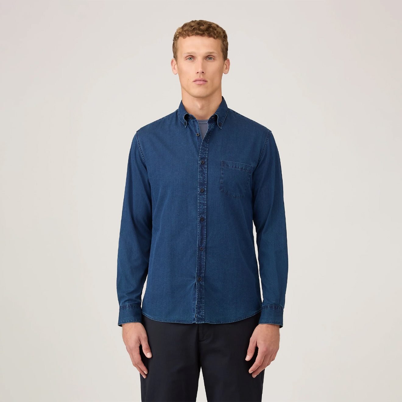 Normaler Preis €228,95Das Sunspel Button-Down-Hemd in Indigo ist aus italienisch gewebtem Baumwolltwill gefertigt und hat eine normale Passform. Es verfügt über einen Button-Down-Kragen und eine aufgesetzte Tasche.