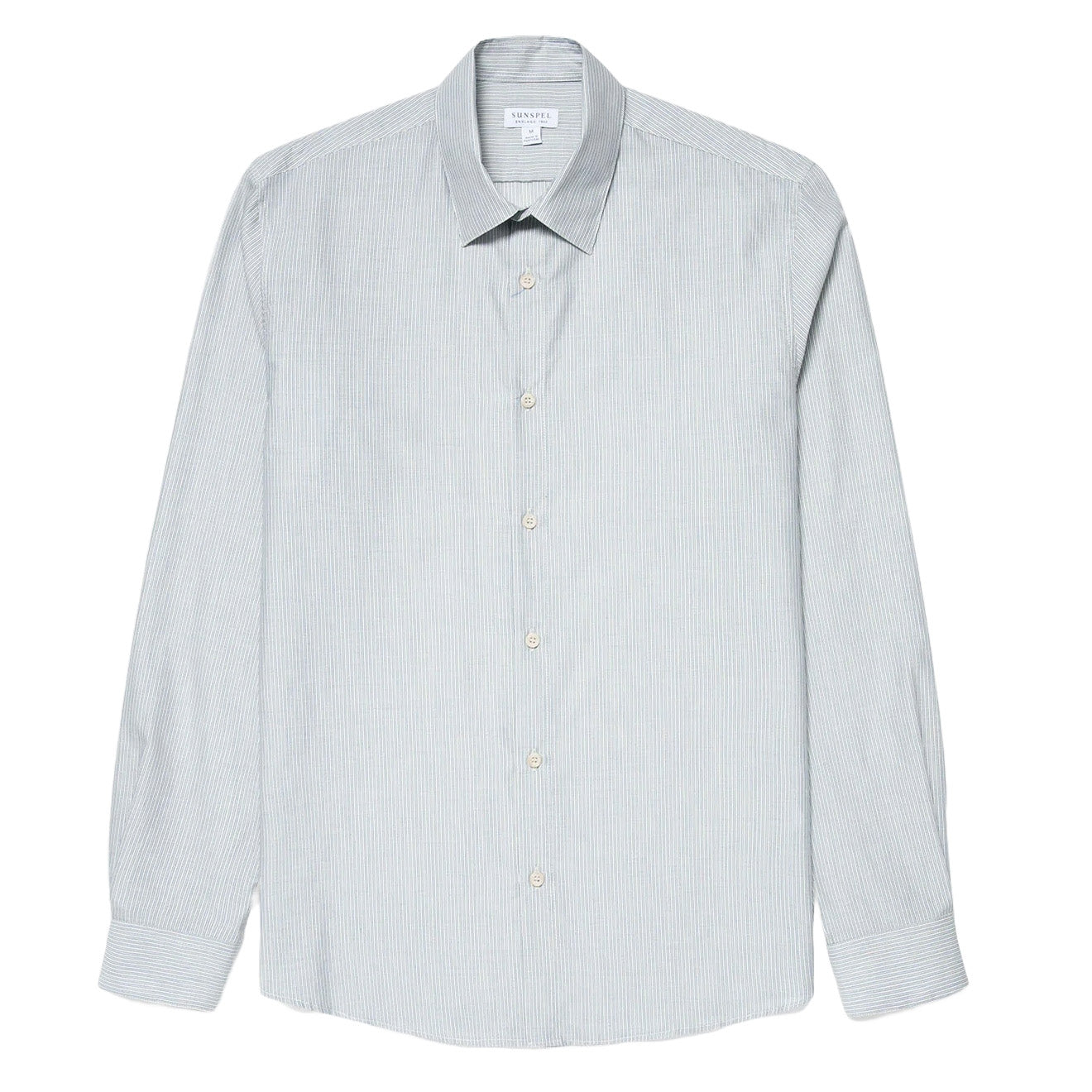 Normaler Preis €262,95 €198,95 Sparen 20% Sonderpreis Dieses hellblau-weiße Baumwoll-Kaschmirhemd von Sunspel ist aus einem italienischen Stoff gefertigt, der feinste Baumwolle mit luxuriös glattem Kaschmir kombiniert. Das Hemd fühlt sich außergewöhnlich leicht und weich an. Es hat eine reguläre Passform und ein zeitloses, elegantes Finish.