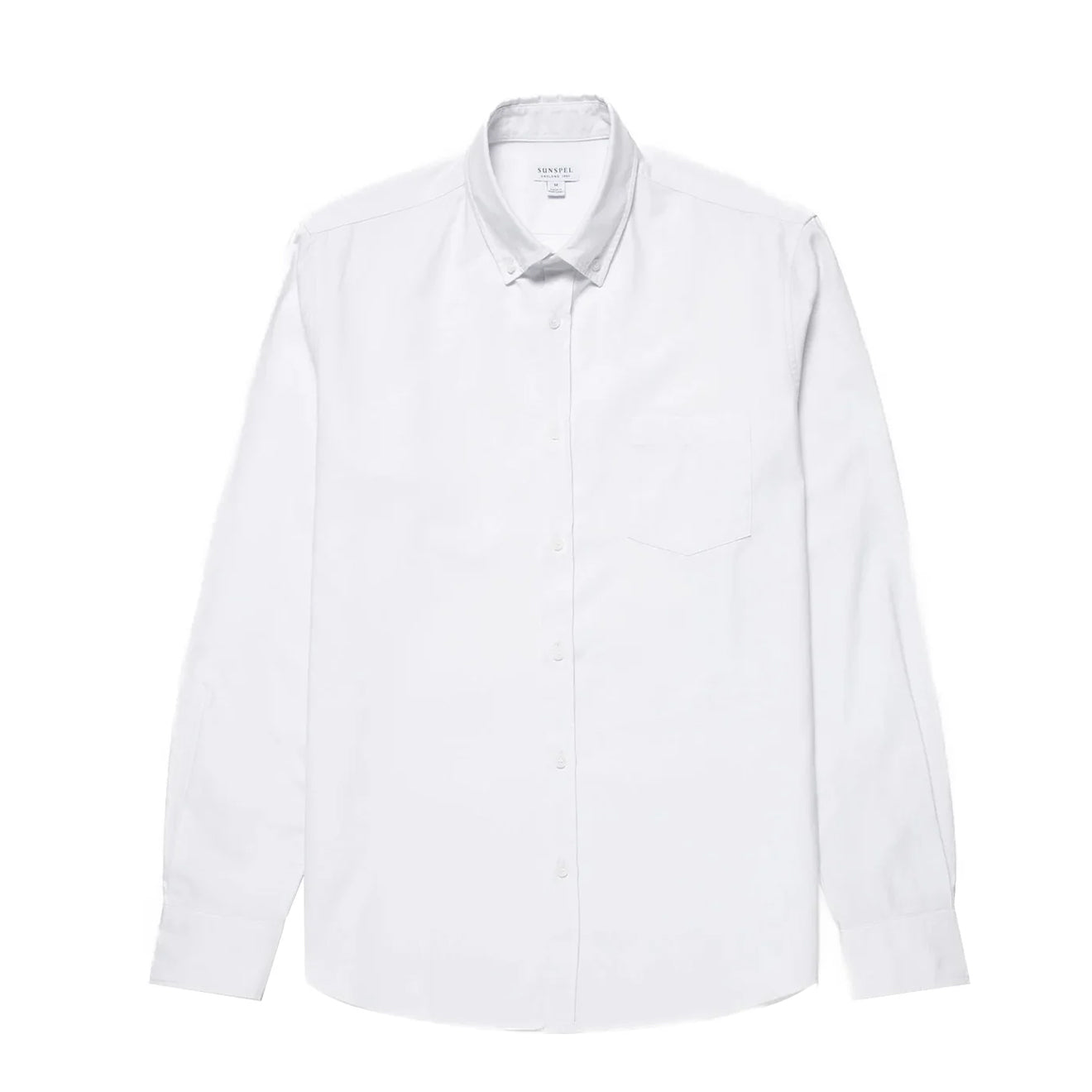 Normaler Preis €204,95Das langärmlige Oxford-Hemd von Sunspel in Weiß ist das ultimative Alltags-Essential. Es bietet ein klares, schlichtes Design, das sich perfekt für die Arbeit und das Wochenende eignet. Es besteht aus hochwertiger, in Italien gewebter Oxford-Baumwolle und ist für einen besonders weichen Griff und ein entspanntes, lässiges Finish gewaschen.