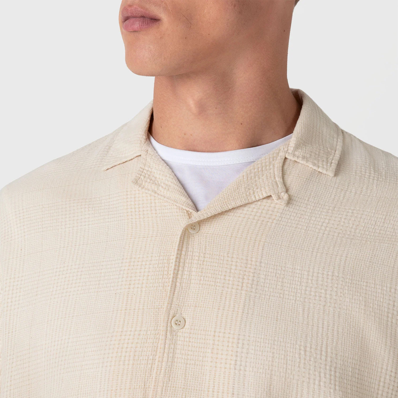 Normaler Preis €216,95Das Sunspel Loose Weave Check Shirt in Ecru ist aus superweicher, leichter italienischer Baumwolle mit dezentem Karomuster und natürlicher Textur gefertigt. Der ungefärbte Stoff sorgt für einen klaren, natürlichen Look. Mit seinem entspannten Camp-Kragen und der regulären Passform lässt es sich perfekt allein oder über einem klassischen T-Shirt oder einer Cellular-Weste tragen – für einen lässigen Sommer-Look.