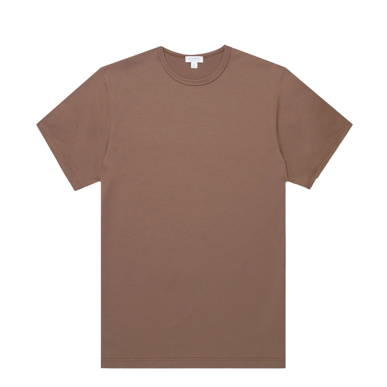 Normaler Preis €111,95Das Sunspel Classic T-Shirt in Bark wird in Long Eaton, England, aus feinster extralangstapeliger Supima-Baumwolle handgefertigt, deren Herkunftsland bis zu ihrer kalifornischen Farm zurückverfolgt werden kann.