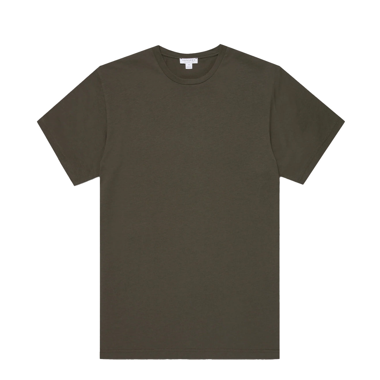 Normaler Preis €105,95Das Sunspel Riviera T-Shirt in Dunkelgrün wurde ursprünglich für Daniel Craig in Casino Royale entworfen. Es besteht aus luxuriöser, mittelschwerer Baumwolle und fühlt sich glatt und strapazierfähig an, mit einer maßgeschneiderten Passform.
