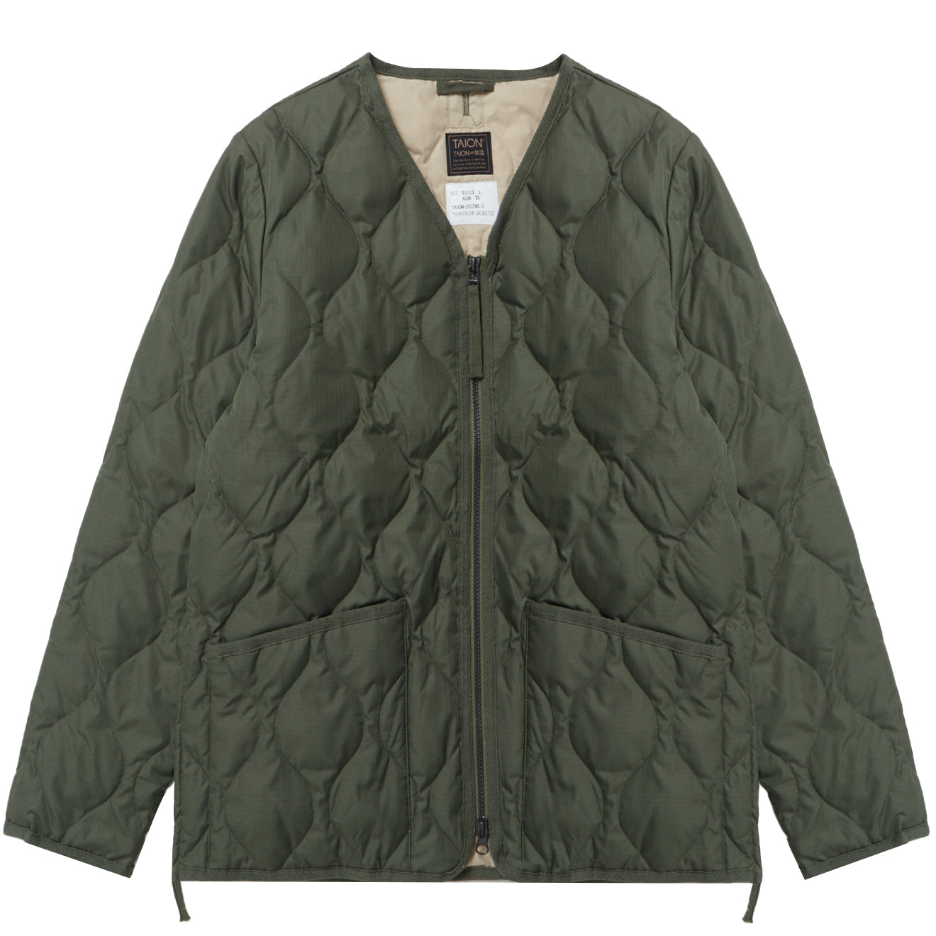 Normaler Preis €186,95Die Taion Military W-Zip V-Neck Daunenjacke in Olivgrün ist von zeitgenössischer japanischer Mode inspiriert. Mit W-Zip-Details und traditioneller Militärform strahlt diese Steppjacke modernes Flair aus. Dank ihrer leichten und dennoch warmen Konstruktion ist sie die ideale Wahl für kühlere Temperaturen.