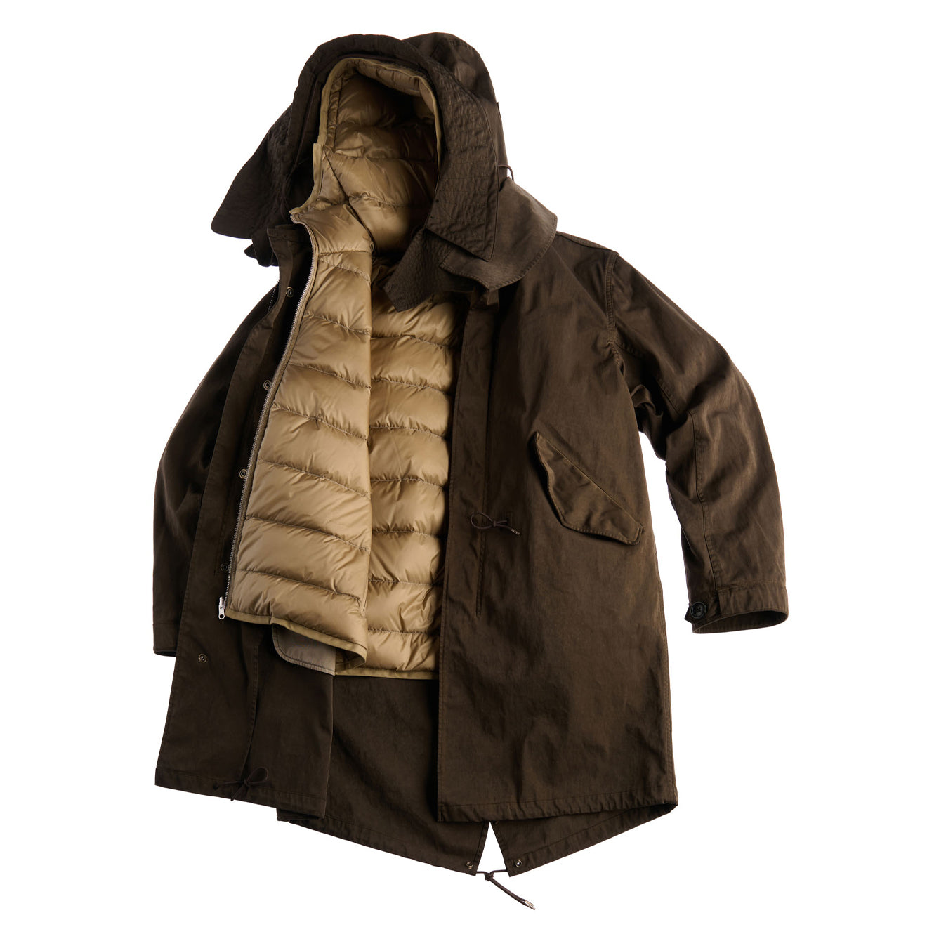 Normaler Preis €1.874,95 €1.499,95 Sparen 20% SonderpreisThe Ten C Parka in Turkish Coffee blends Italian craftsmanship with innovative Japanese fabrics. Constructed from 12oz OJJ (Original Japanese Jersey), it is inspired by the fishtail coats used by the US Army during the Korean War. The parka features a removable hood with a built-in wire for personalised shaping, offering both style and functionality. For added warmth, it can be paired with a shearling or down liner (sold separately, same size as the parka).