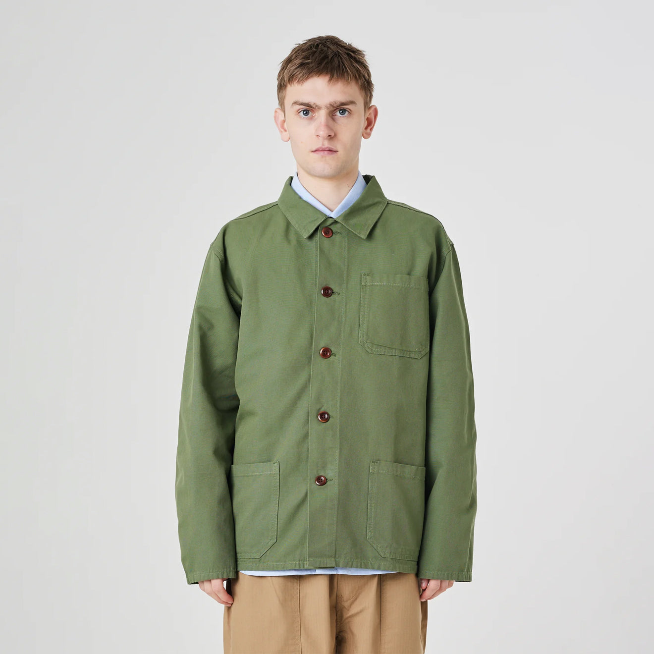 The Uskees 3001 Overshirt is a workwear-inspired jacket designed for durability and style. Made from 100% organic cotton, it features deep pockets, reinforced elbows, and a roomy boxy fit, making it perfect for layering or wearing as a lightweight jacket.