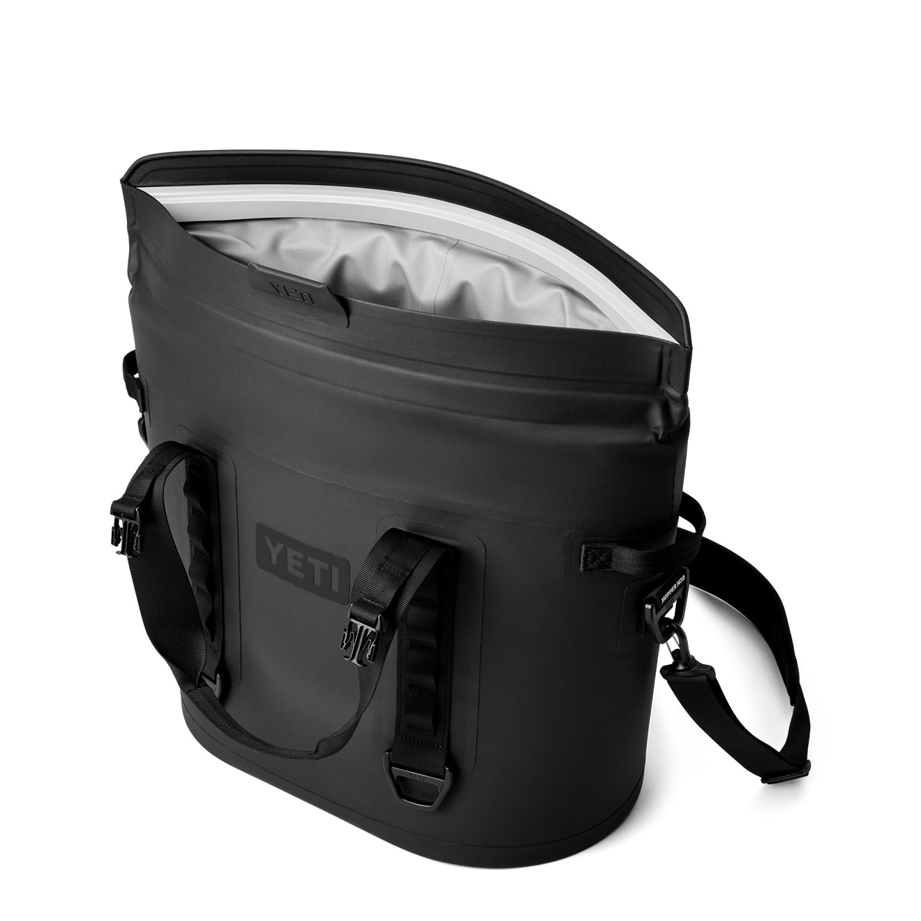Die YETI Hopper M30 Kühltasche in Schwarz ist die ultimative, robuste Kühltasche mit MagShield Access für einfaches Be- und Entladen. Die weite Öffnung erleichtert das Verpacken von Essen und Getränken für Ihr Wochenendabenteuer, während der extrem langlebige Magnetstreifen für einen dichten Verschluss sorgt und alles kühl hält. Schnellverschlüsse bieten zusätzliche Sicherheit, und das integrierte Hitchpoint Grid ermöglicht die Befestigung von Zubehör wie der Rambler Bottle Sling oder dem SideKick Dry Gear Case für zusätzliche Funktionalität unterwegs.